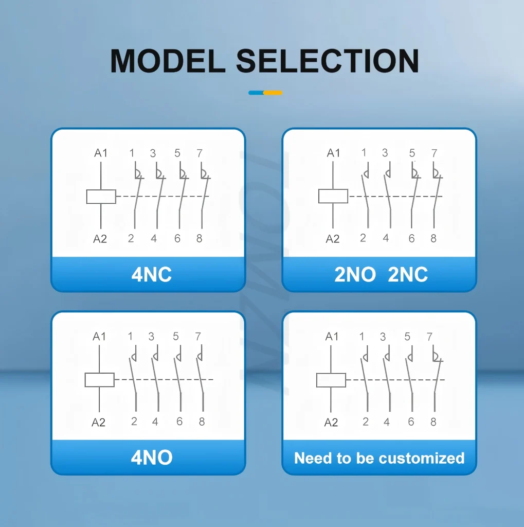 | Number and type of contacts | Ensure that the number of main contact poles ( such as unipolar AC contactors, triodes ) and the required auxiliary contacts ( normally open / normally closed ) meet the control requirements. |