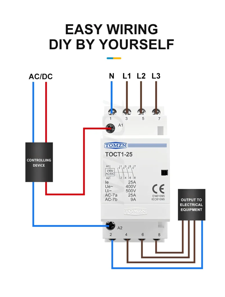 Reconnect all wires according to your recorded AC contactor wiring diagram. Ensure that all wiring is firm and reliable, especially the wiring of the main circuit, must be tightened to avoid heating caused by poor contact.