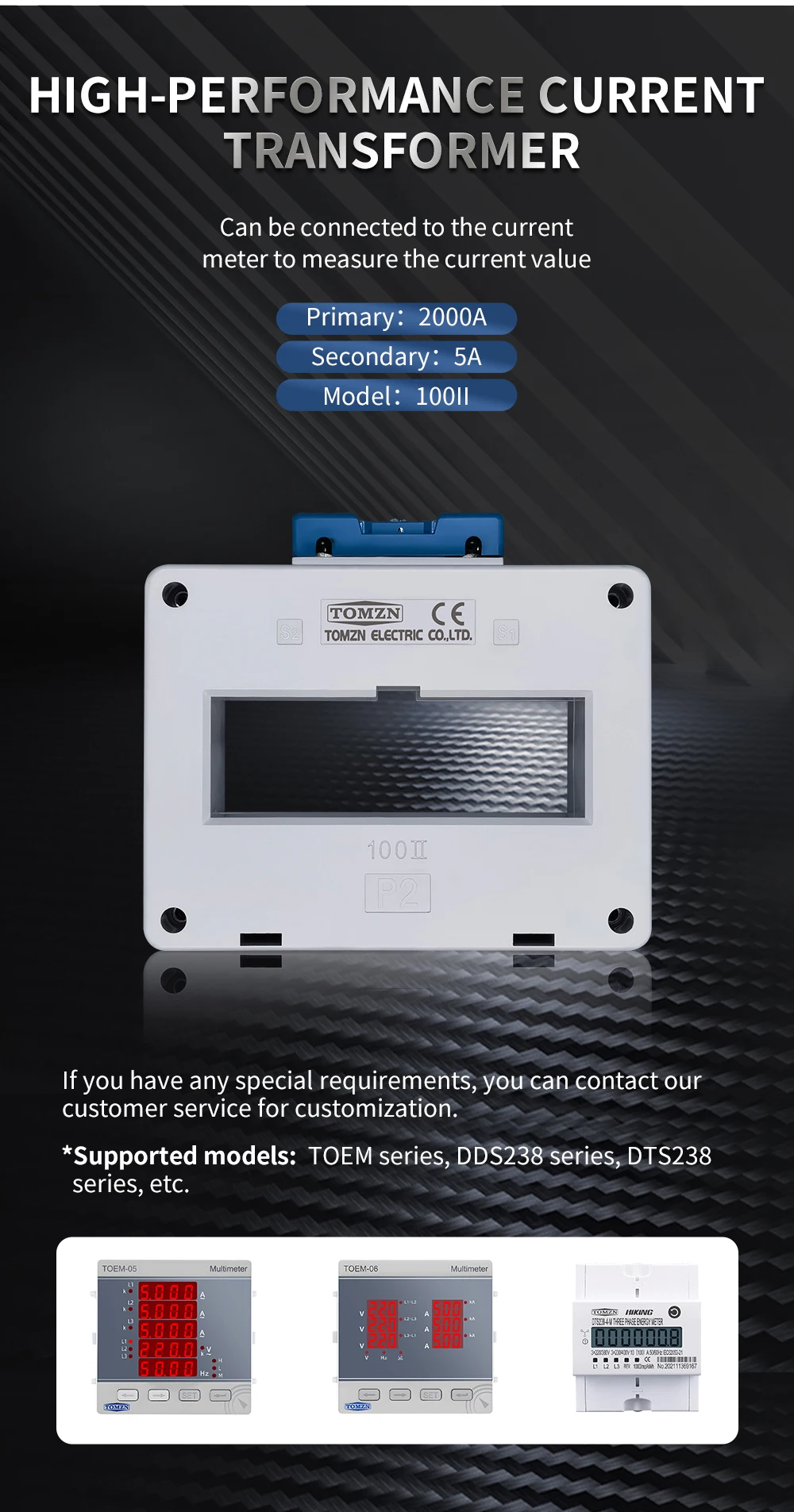Rated Primary Current (Ipn):75A, 100A, 150A, 200A, 250A, 300A, 1000A, 1500A, 2000A