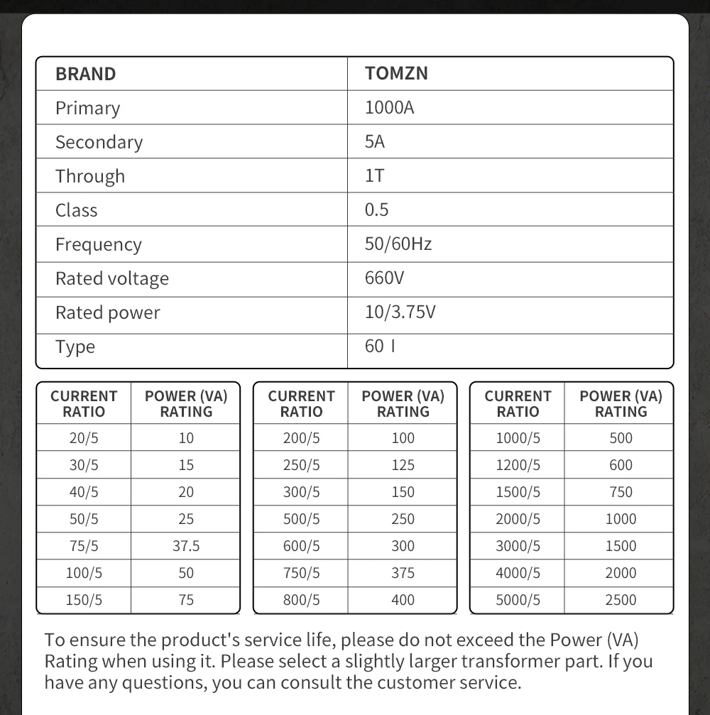 CT 1000/5A 10/3.75VA 60I