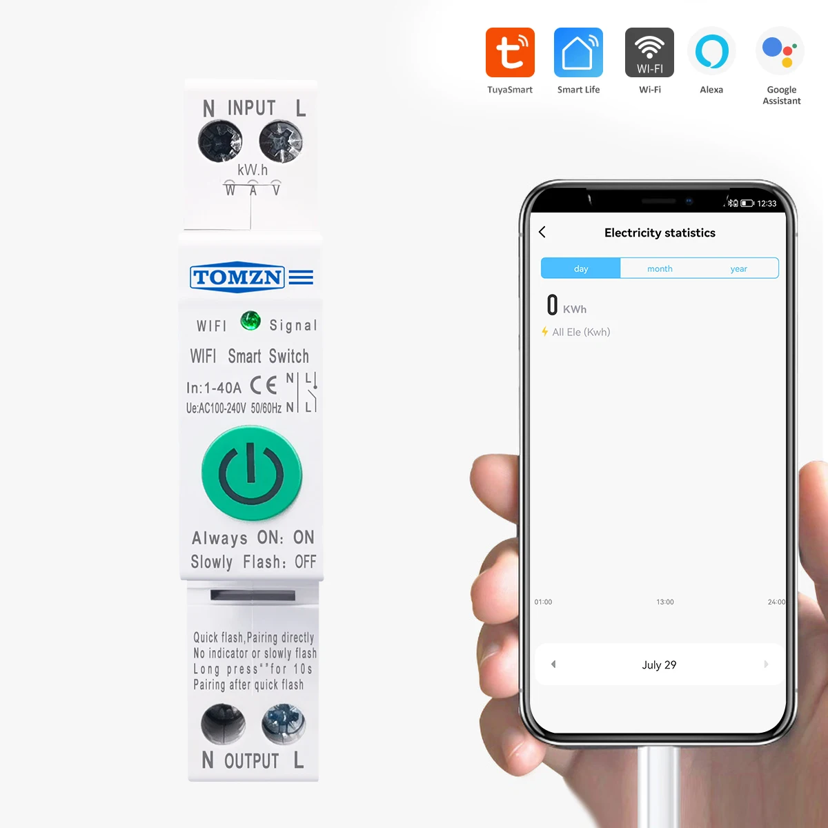40A Single Phase WIFI Smart Switch Energy Meter Kwh Metering Monitoring Circuit Breaker Timer Relay MCB TUYA smartlife