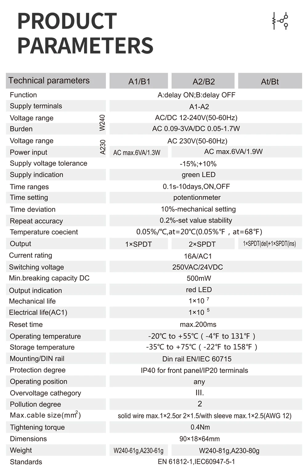 Standards: EN 61812-1,EC60947-5-1