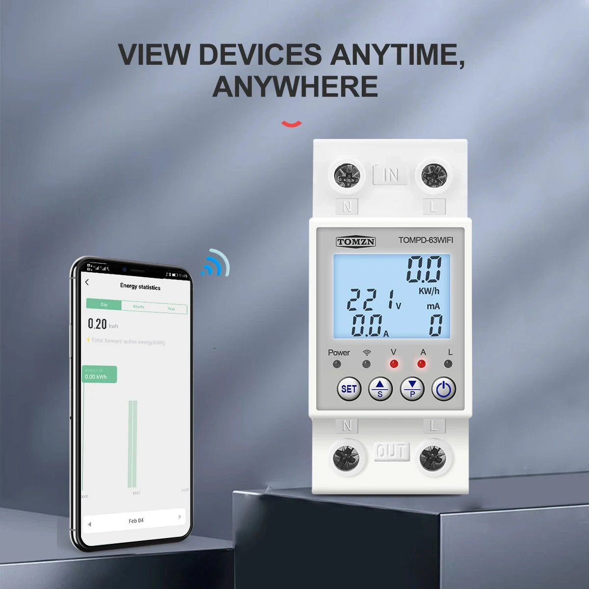 Reclosable smartlife TUYA WIFI Circuit breaker 63A 110V 220V Energy Meter Metering Timer with voltage current leakage protection