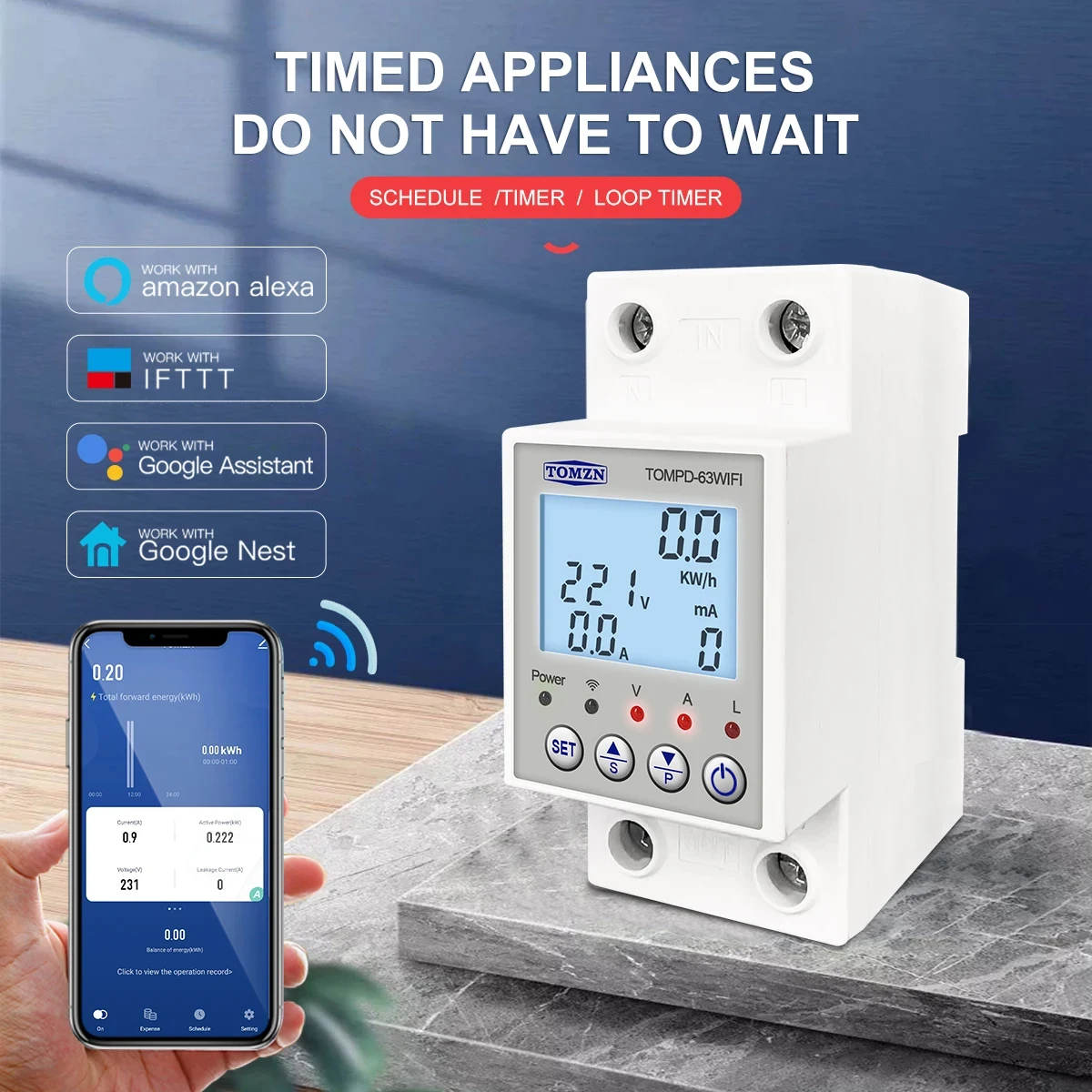 Be the first to review “Reclosable smartlife TUYA WIFI Circuit breaker 63A 110V 220V Energy Meter Metering Timer with voltage current leakage protection”