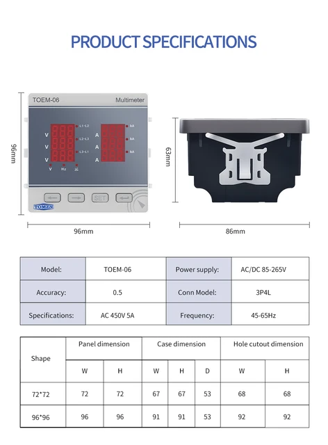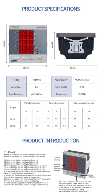 Digital multimeter (V-I-Hz) are is used to measure and display three phase voltage, three phase current and frequency in power system.It supplys the view functions of max.and min.value of voltage and current and the max.demand value of current.