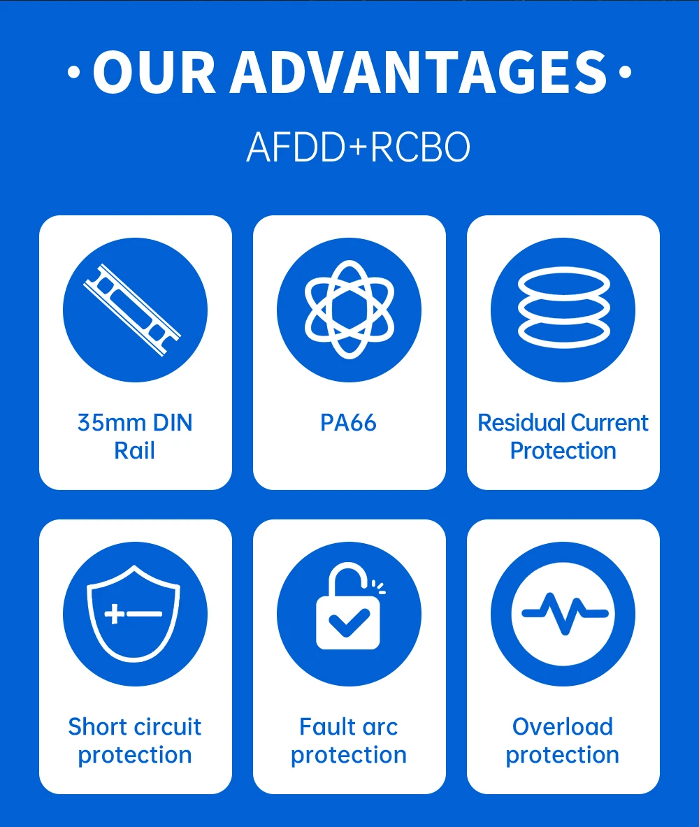 Standards: Complies with IEC 61009 (RCBO) and IEC 62606 (AFDD)