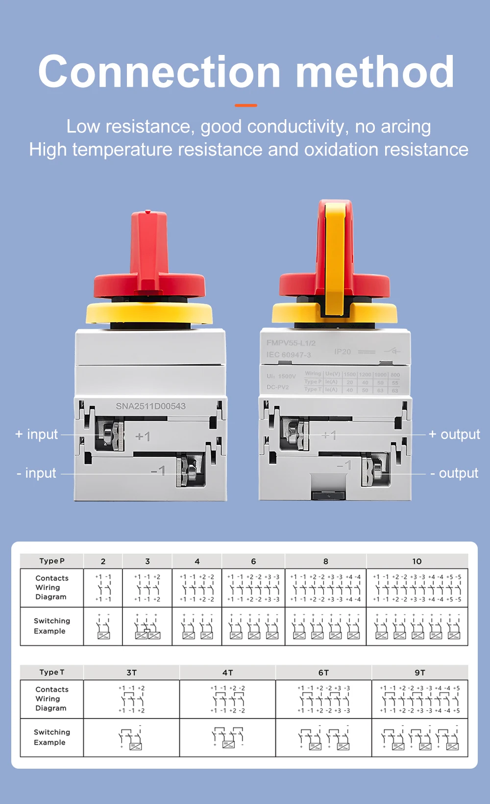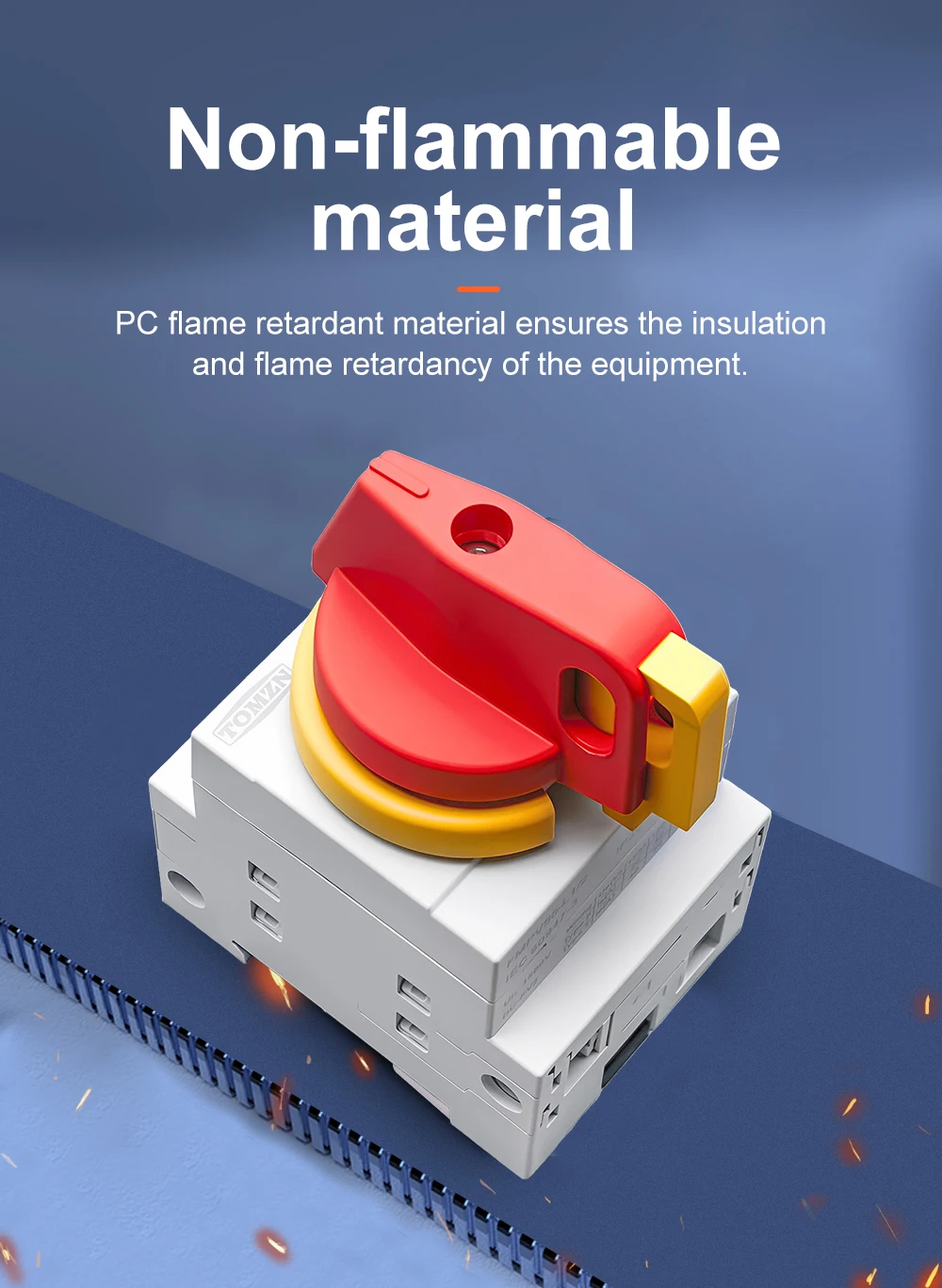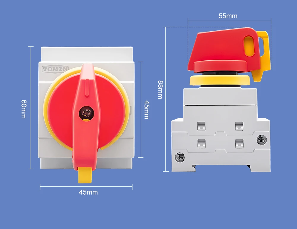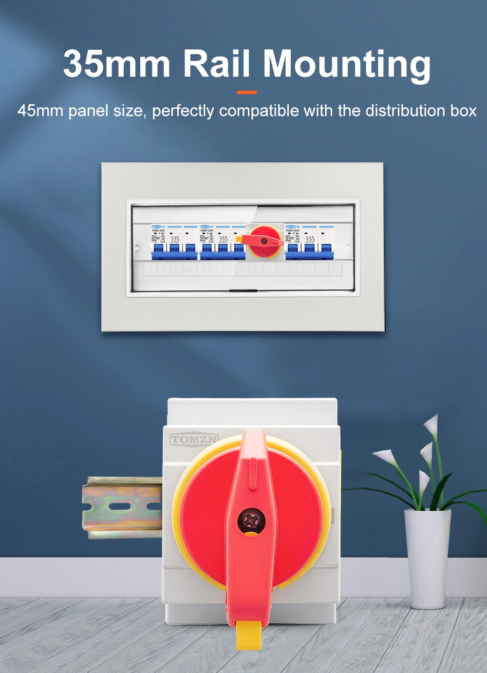 FMPV55-L1/2 is a load isolating switch designed for high-voltage environments. It has three modes: ON/OFF/LOCK, and it complies with the IEC 60947-3 standard.