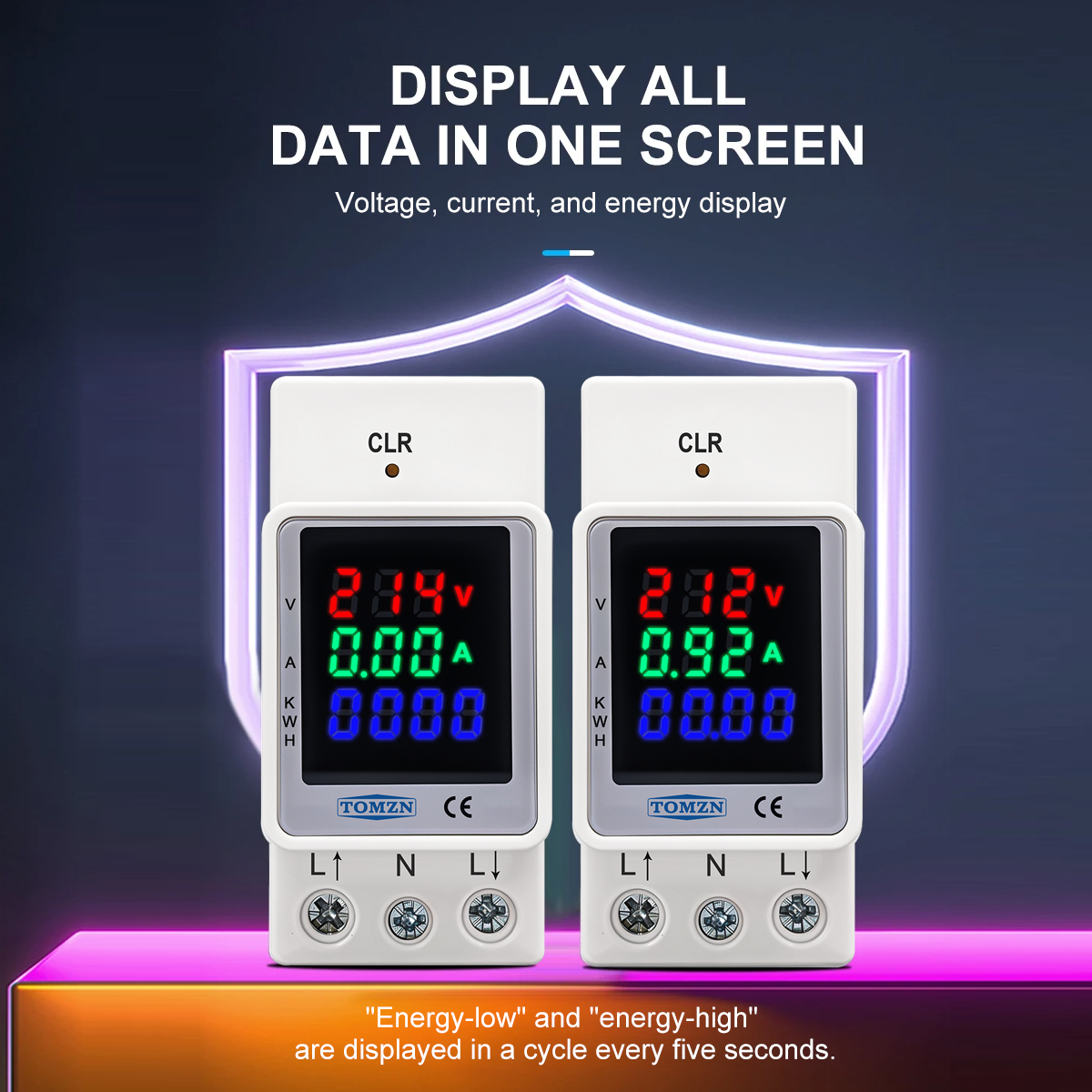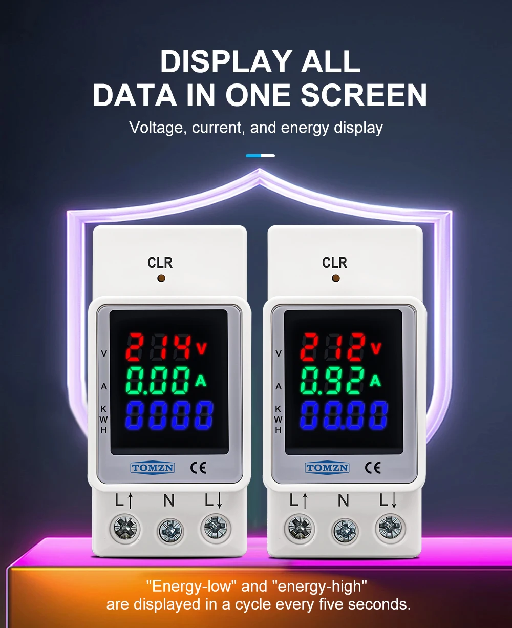 The TOMZN 3IN1 Electric Energy Meter is a versatile tool designed for electrical professionals and DIY enthusiasts alike. With its digital display, it offers a clear and easy-to-read interface that displays voltage, current, and energy consumption simultaneously. The meter’s reconfigurable colours allow for personalized settings, making it a practical addition to any electrical setup. The high and low digits of the energy consumption are displayed separately, providing a comprehensive view of energy usage.
