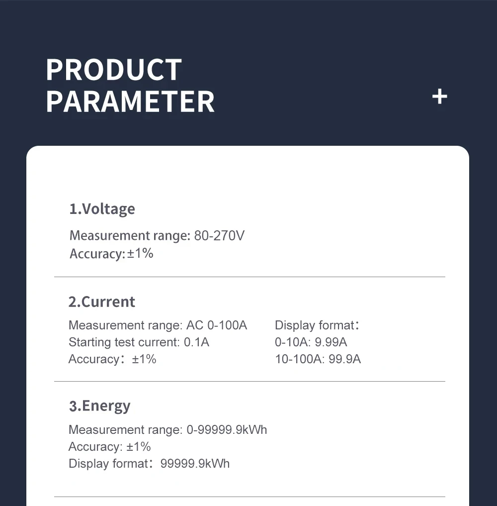 Energy measurement range: 0-99999.9kWh