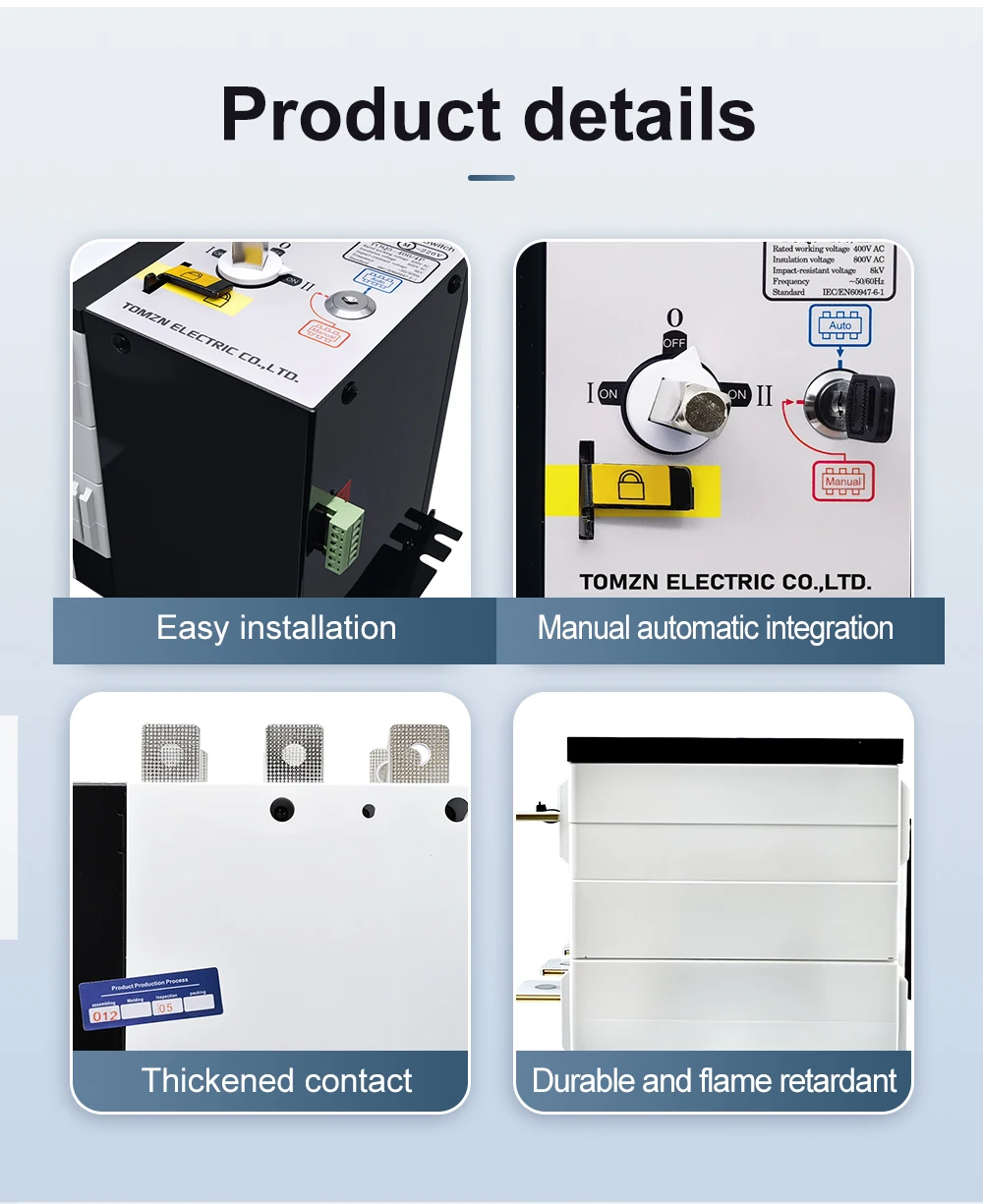 1. Dual power Automatic transfer switch can switch to Normal power or reserve power automatically. Please noted that the switch can’t turn on or turn off the generator. This switch Normal power first. If normal power on, the switch will switch to Normal power. If normal power off, and reserve power on, the switch will switch to reserve power.