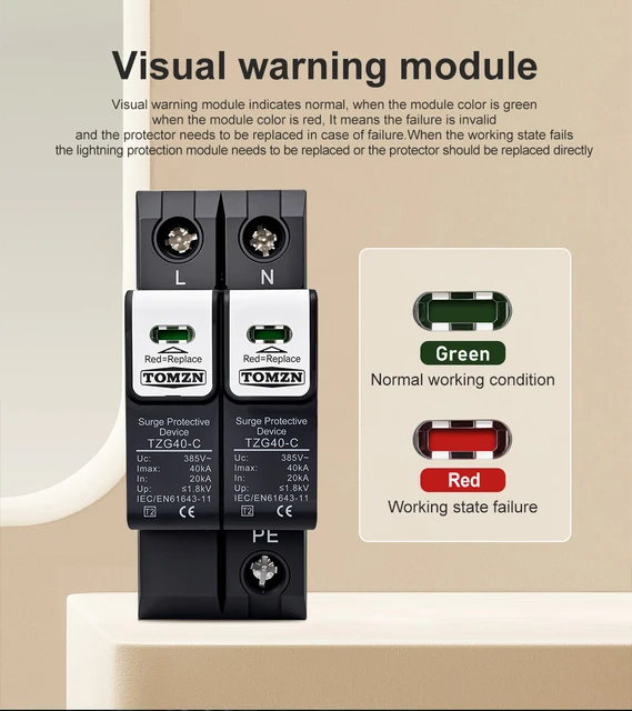TOMZN AC SPD 2P 275V 385V 420V 20kA~40kA Din Rail Surge Protective Device DPS Quick-release Mechanism Pluggable MOV Shield-Type