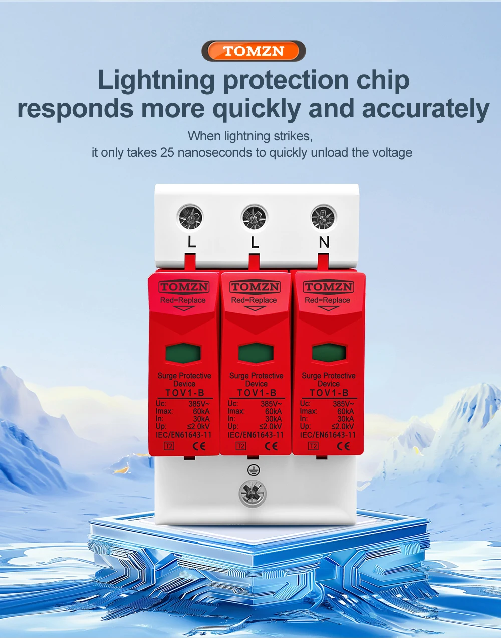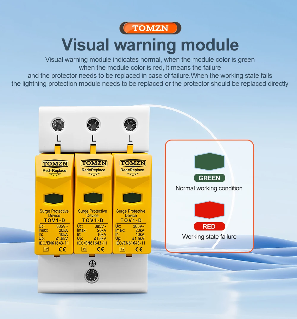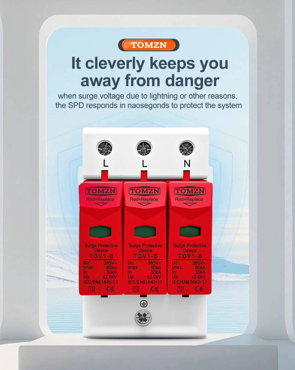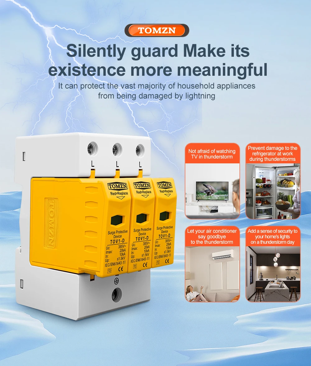 TOV1-B/C/D is applied low voltage standard IEC/EN 61643-11 to protect against AC power line system and other equipment from over voltage and instantaneous over voltage damage. It has advantages of large discharge current, fast respond time and low residual voltage.