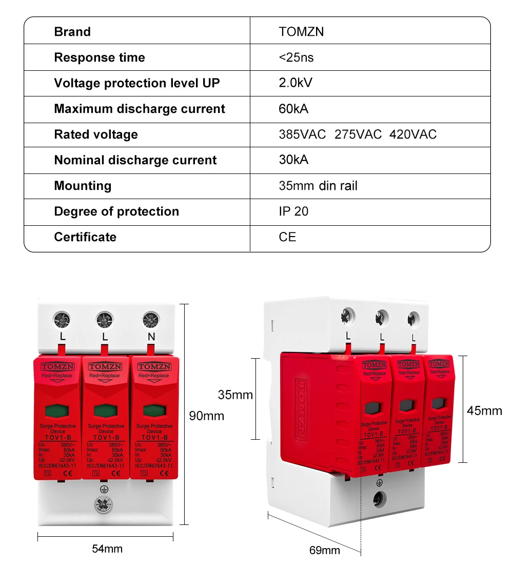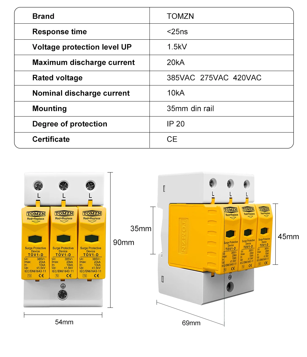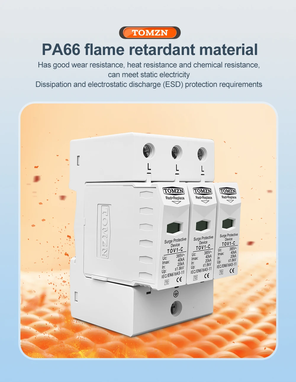 TOV1-B/C/D is applied low voltage standard IEC/EN 61643-11 to protect against AC power line system and other equipment from over voltage and instantaneous over voltage damage. It has advantages of large discharge current, fast respond time and low residual voltage.