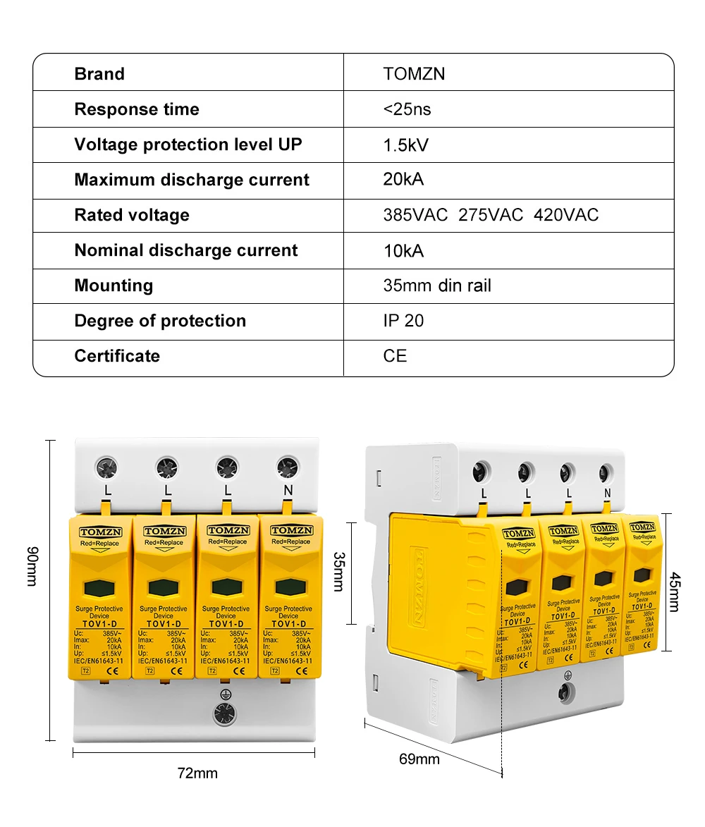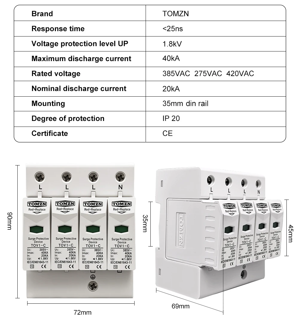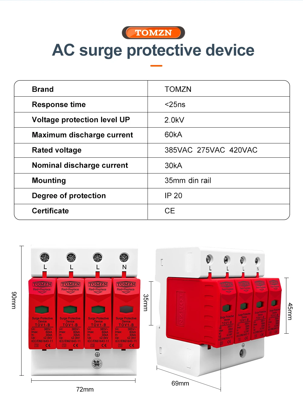 TOV1-B/C/D 275V/385V/420V AC 10-20kA/20-40kA/30-60kA