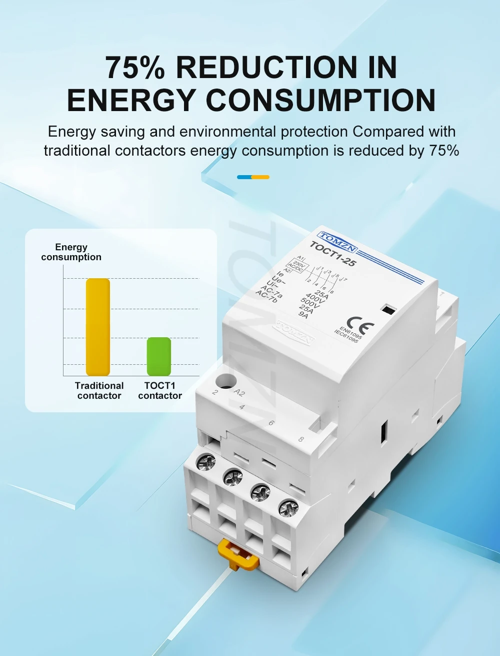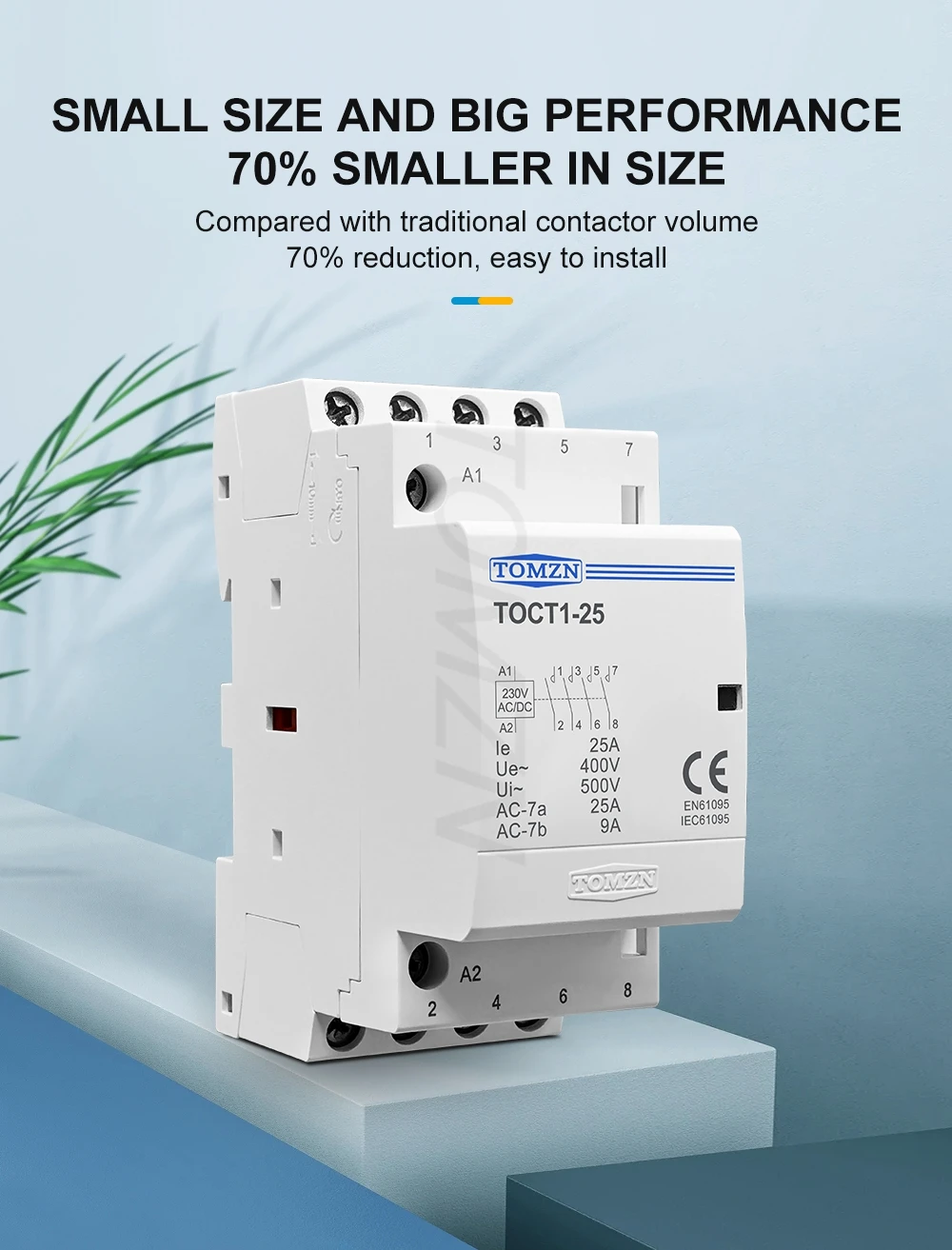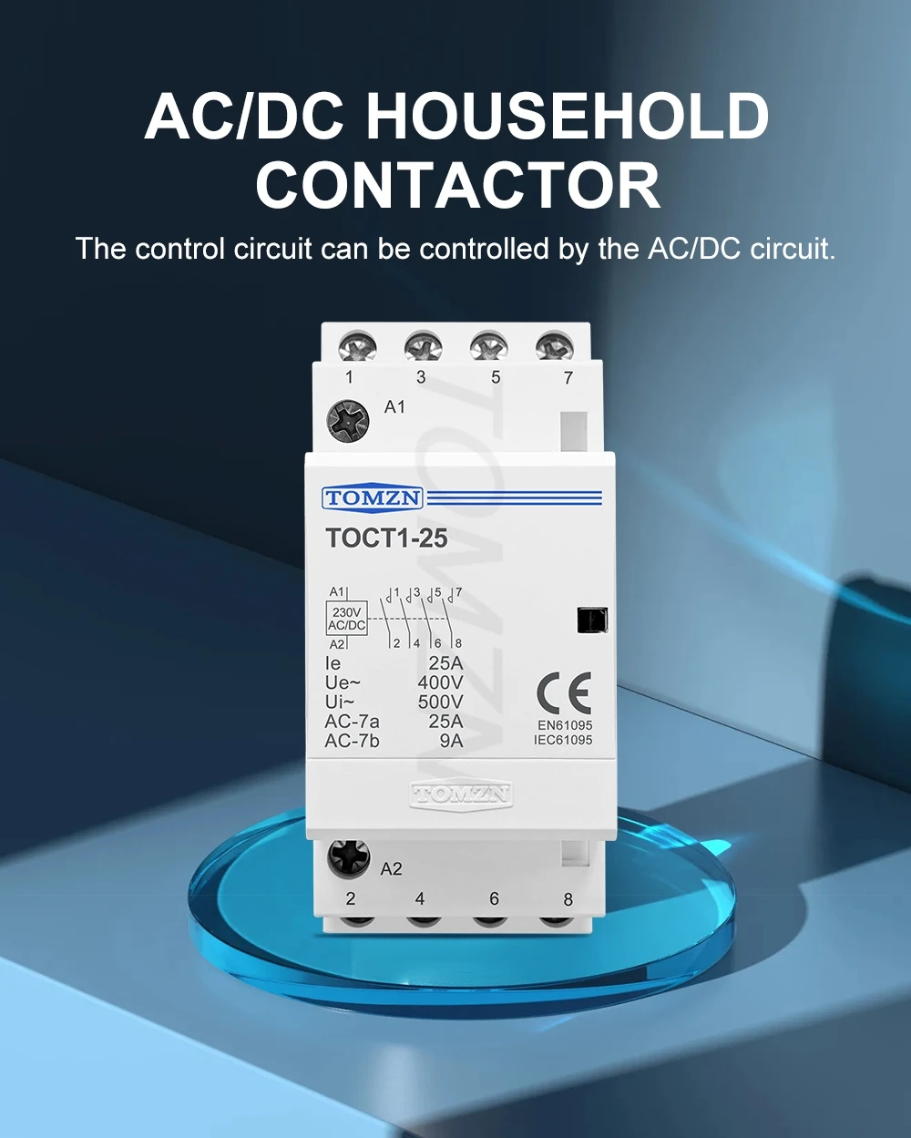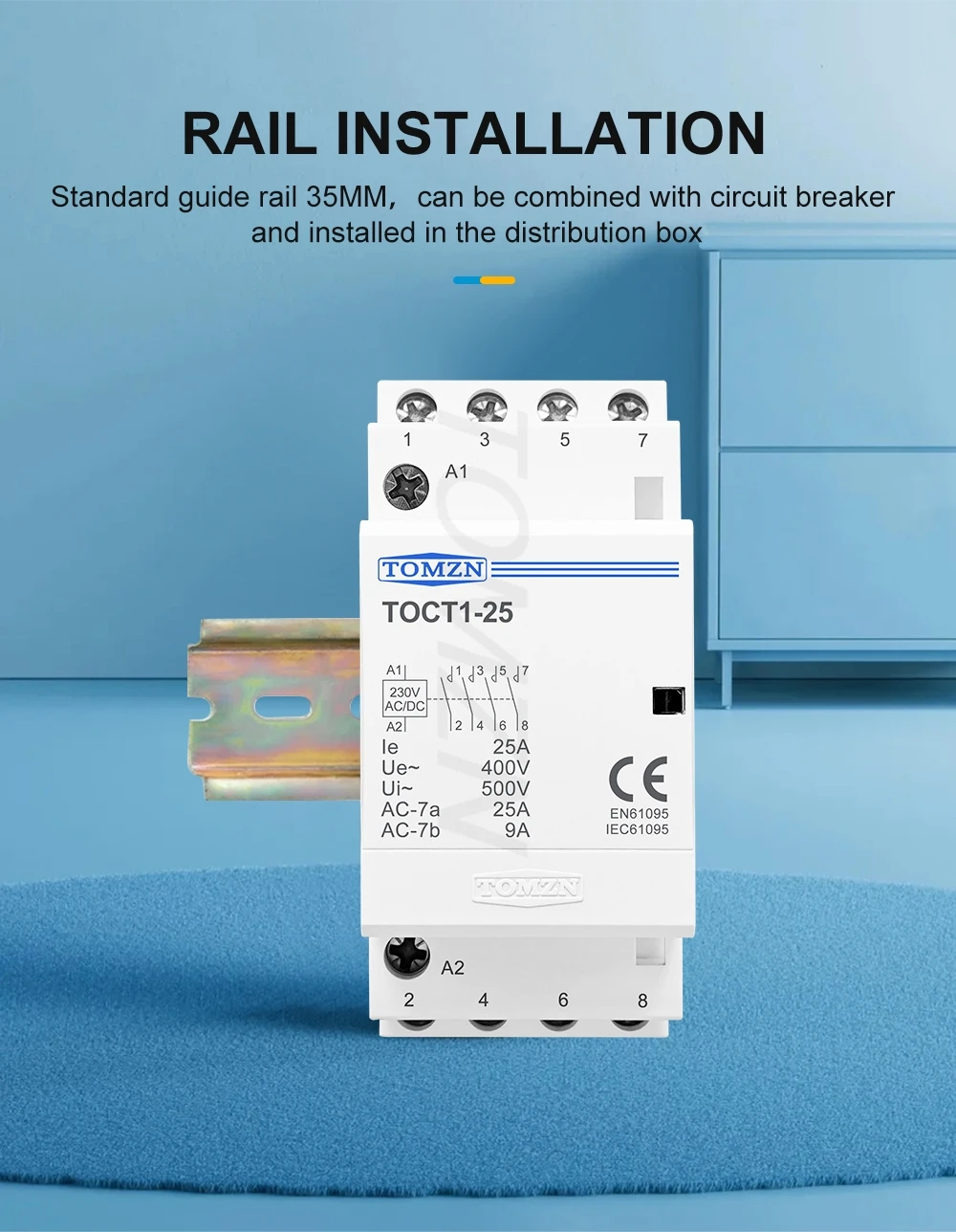 TOMZN Contactor Control Circuit AC/DC 25A 4NC 4NO 2NO2NC 24V 110V 220V 50/60Hz Din Rail Modular Contactor Changeover Switch