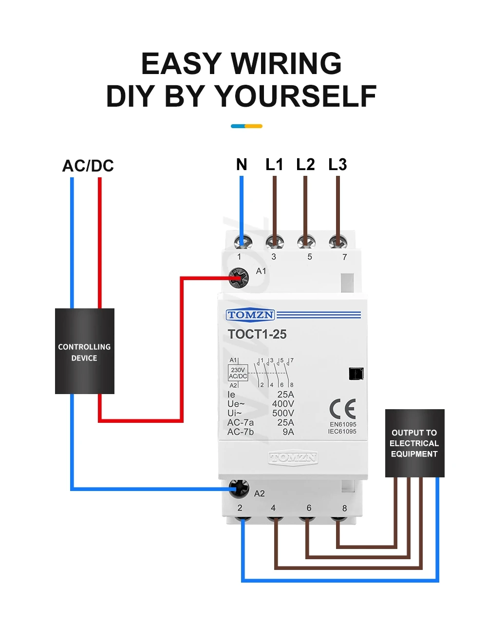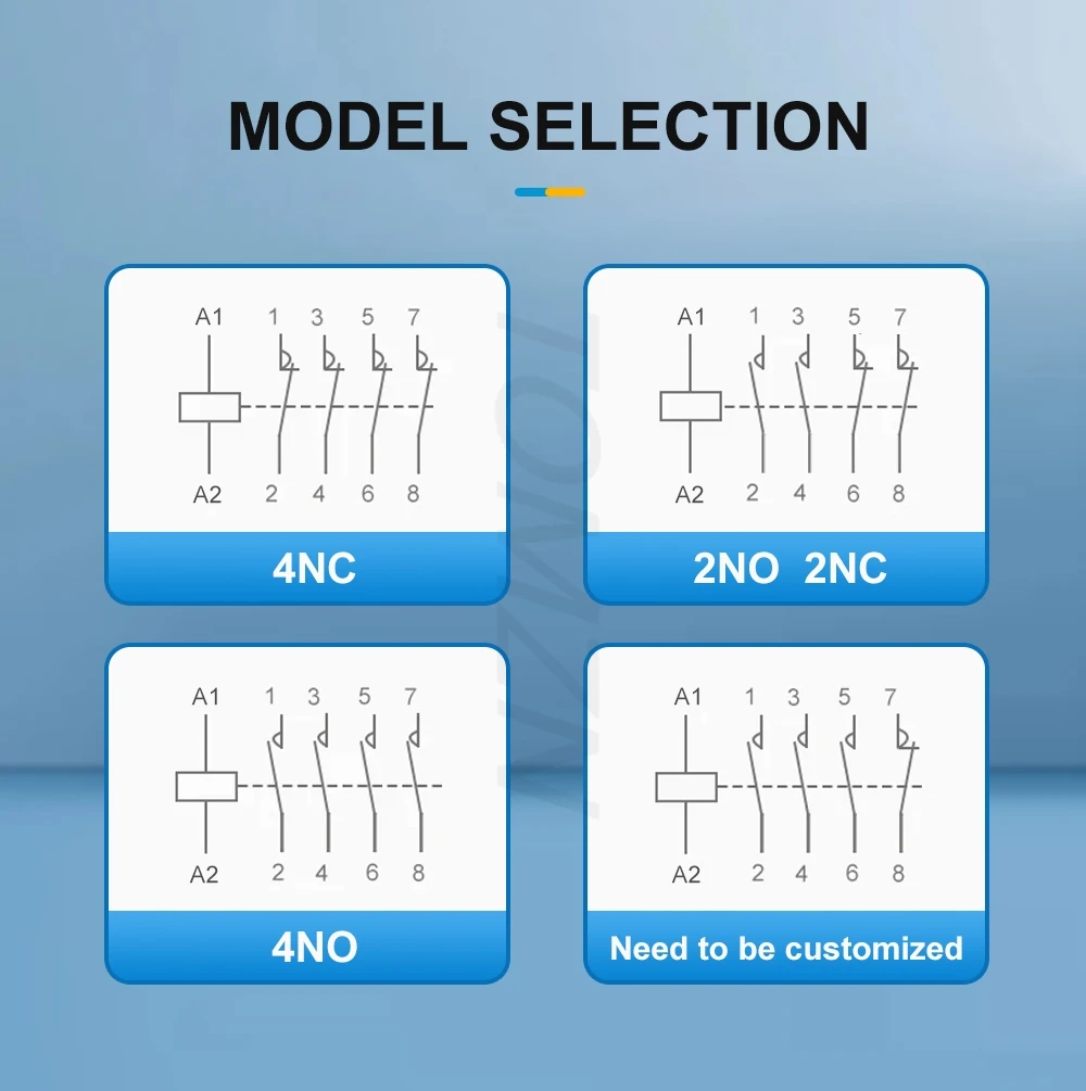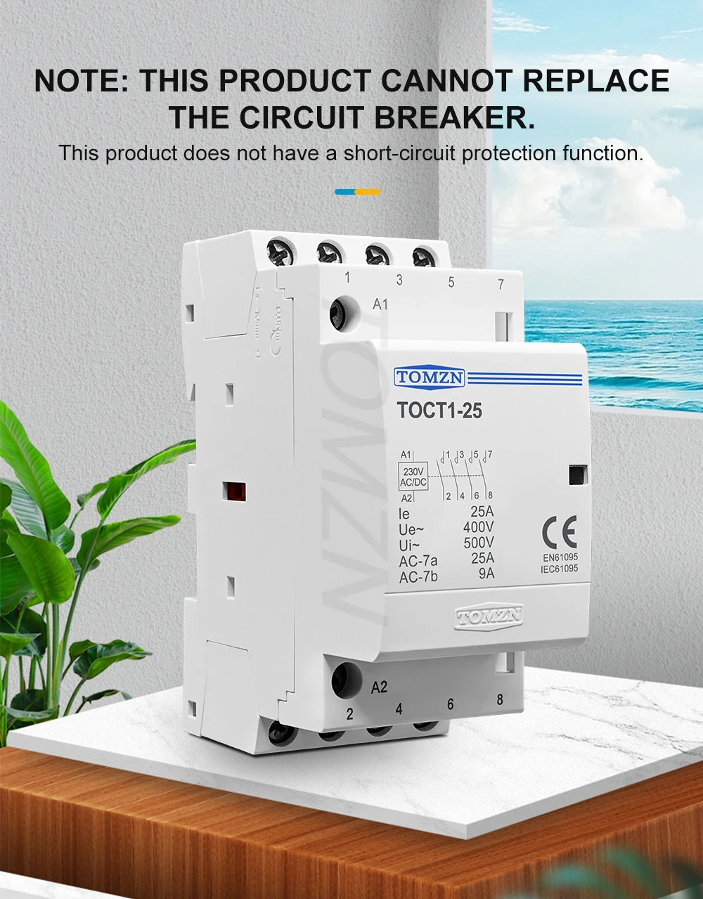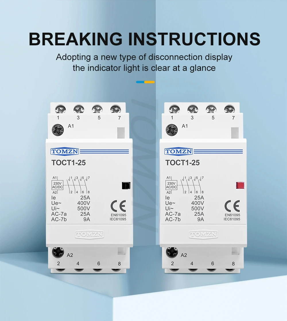 TOMZN Contactor Control Circuit AC/DC 25A 4NC 4NO 2NO2NC 24V 110V 220V 50/60Hz Din Rail Modular Contactor Changeover Switch