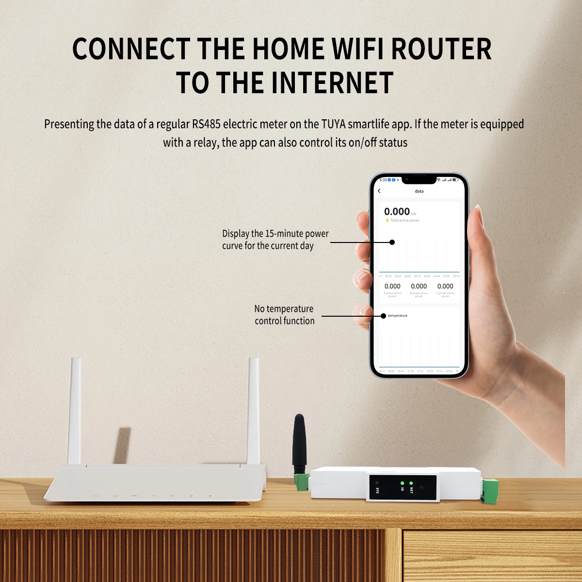 TCB11-W can connect up to 25PCS RS485 energy meter. And it can also read data from and control the devices via WIFI.