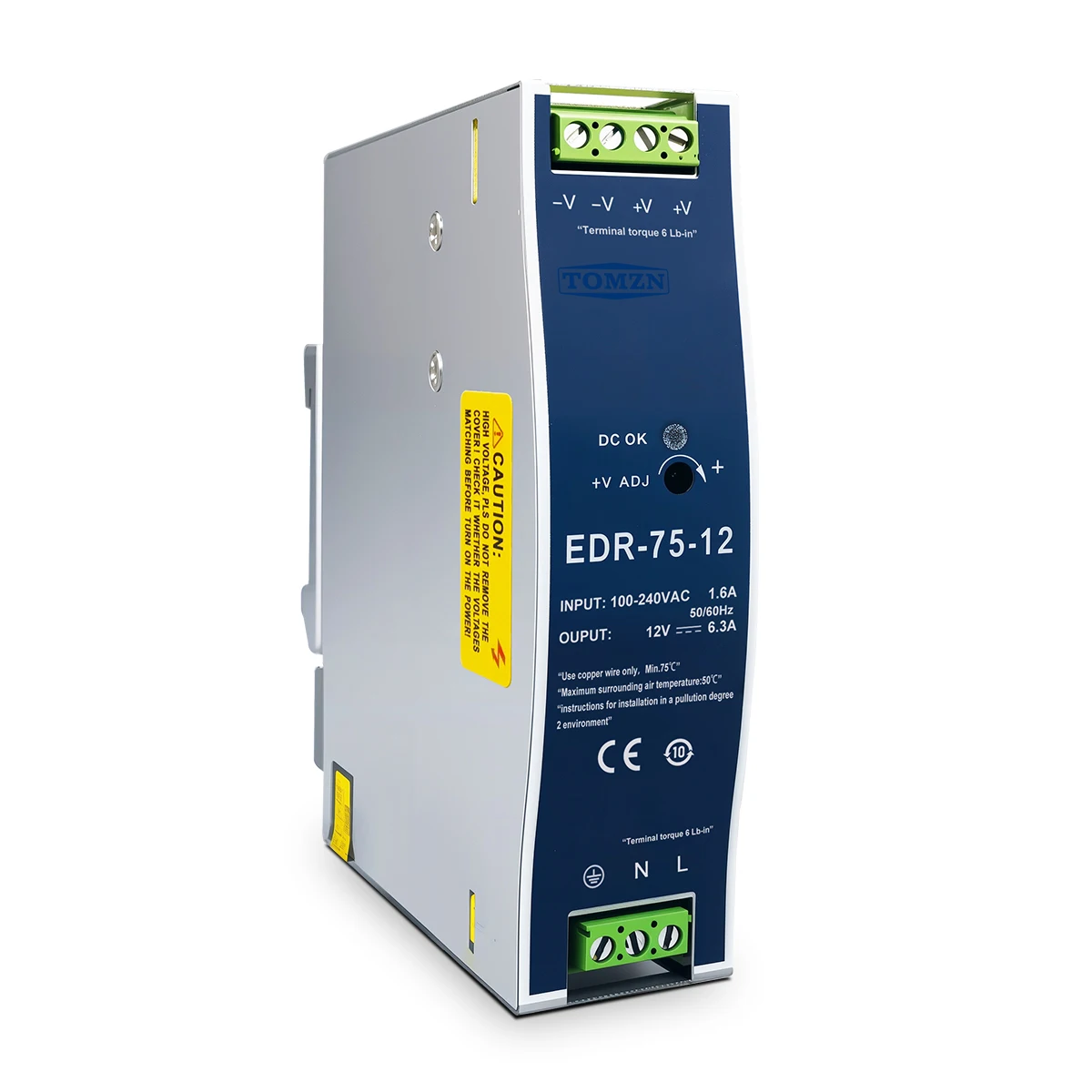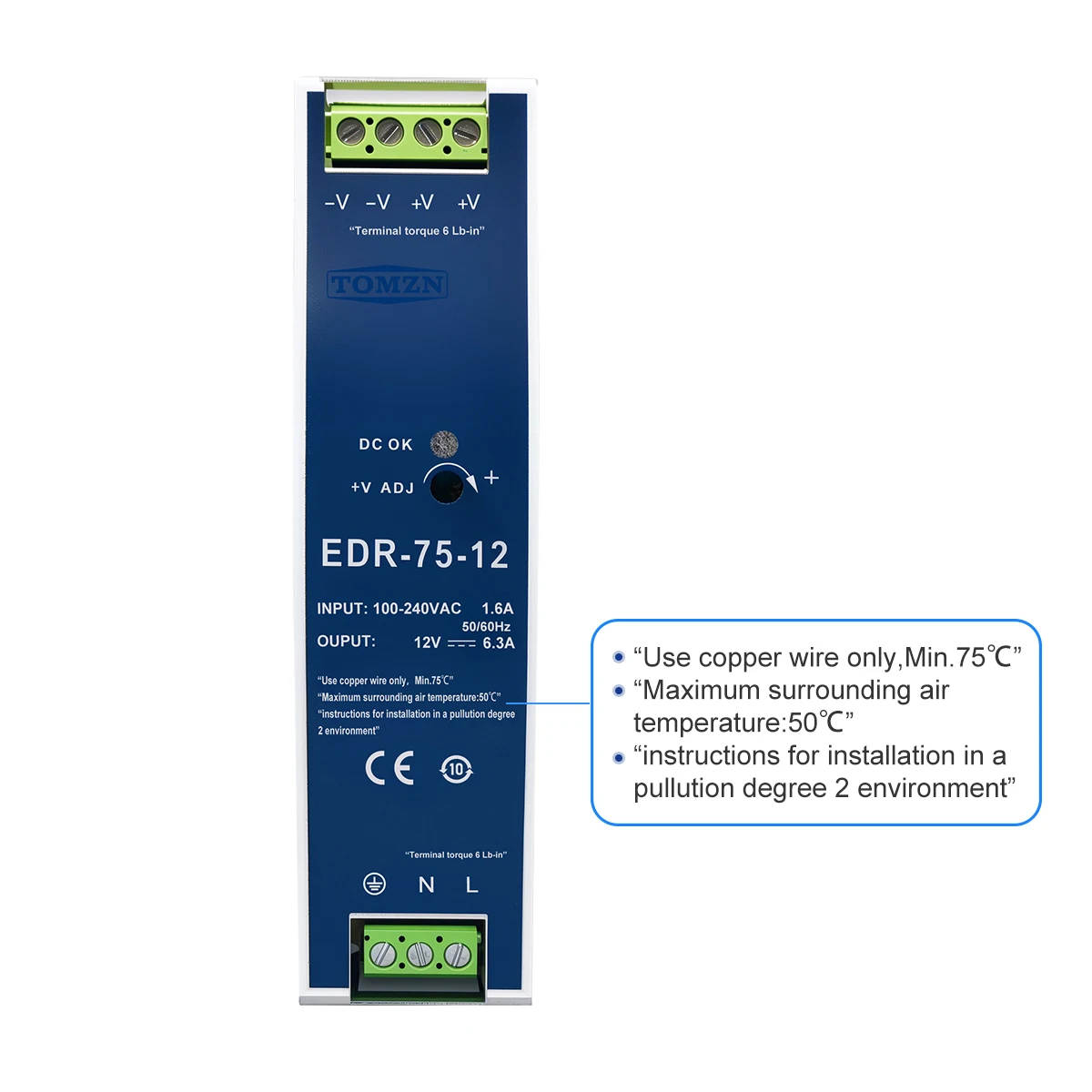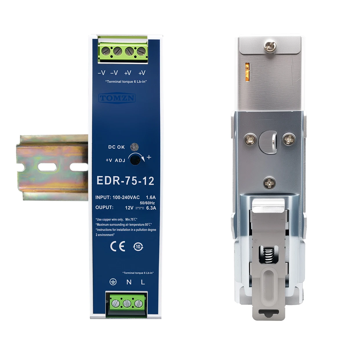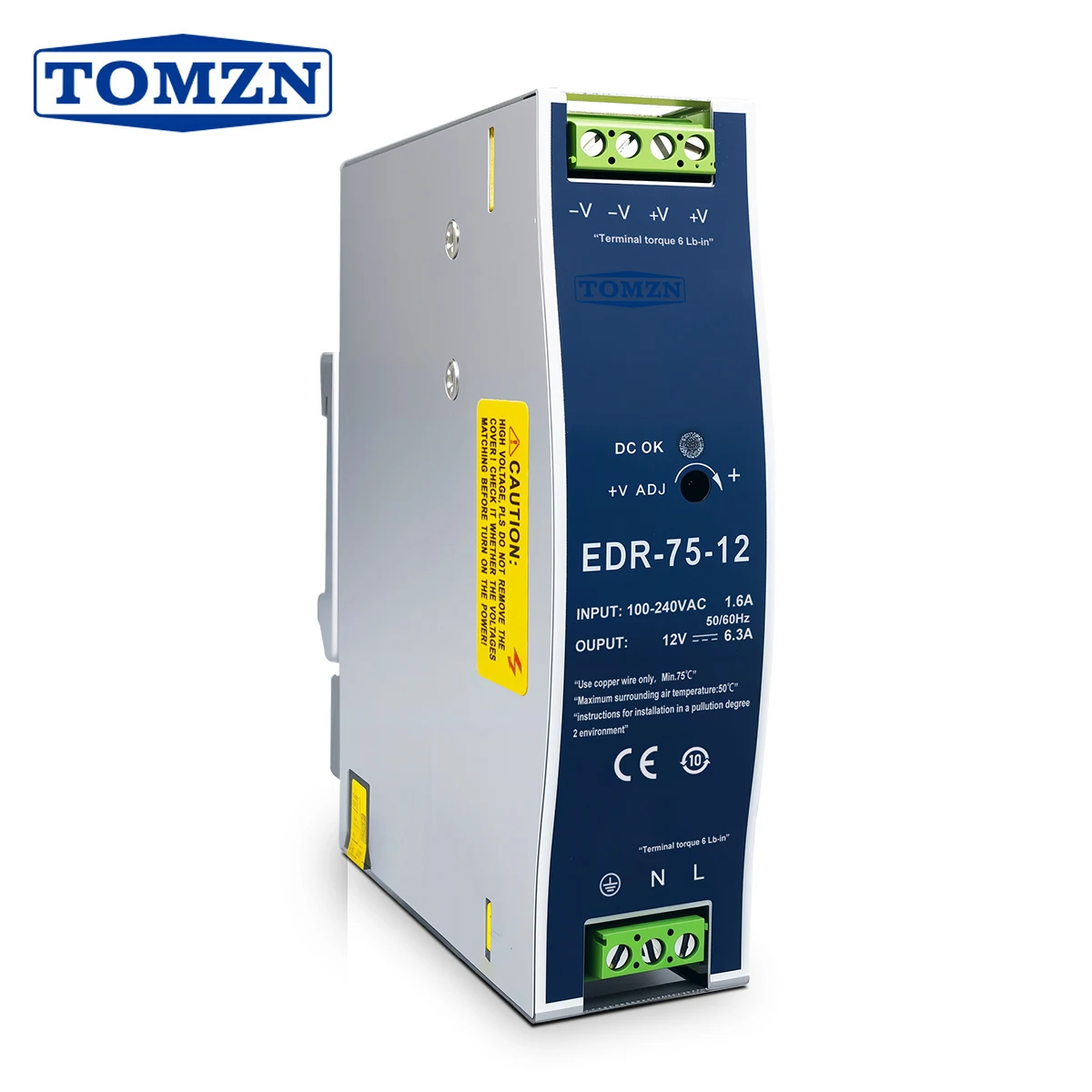 TOMZN EDR-75 DIN RAIL 75W AC to DC SMPS Output Switching power supply input 100-240V output 5V 12V 15V 24V 36V 48V adjustable