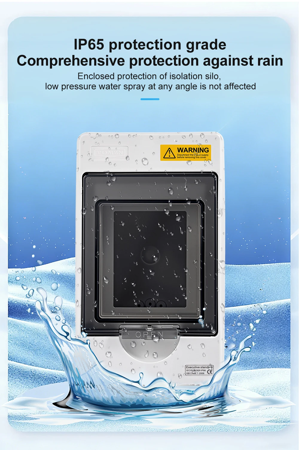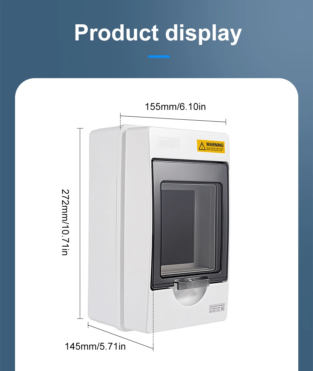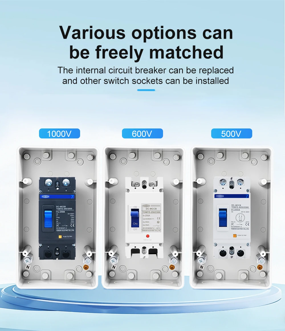 This IP66 waterproof combination box is designed as a bare enclosure for the TOM7Z series 2P MCCBs from TOMZN, supporting voltage ratings of 500V, 600V, and 1000V, and current ratings of 150A, 160A, 200A, and 250A. The box provides reliable protection against dust and powerful water jets, making it suitable for harsh outdoor or industrial environments. Please note that this is a bare box only; the MCCB is not included. It is specifically engineered for TOMZN TOM7Z series MCCBs and is not compatible with MCCBs from other brands.