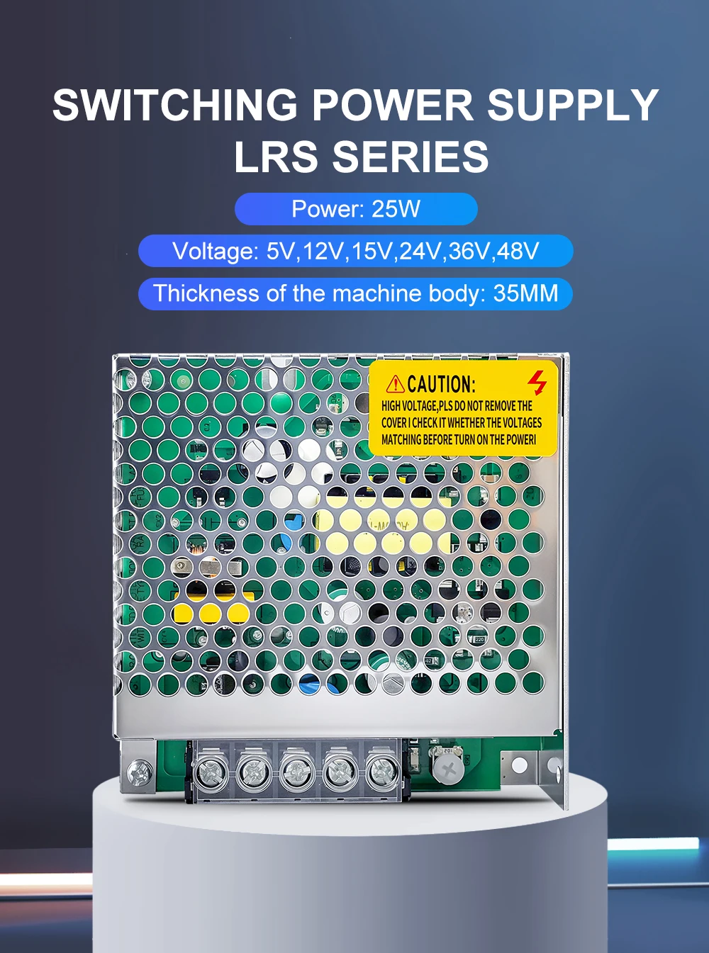 S-25W can convert AC110V/220V voltage to DC5V/12V/15V/24V/36V/48V voltage.