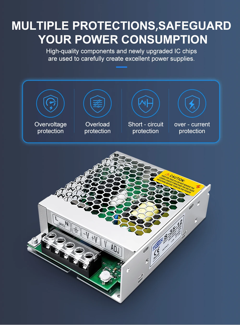 Function: S-35W can convert AC110V/220V voltage to DC5V/12V/15V/24V/36V/48V voltage.