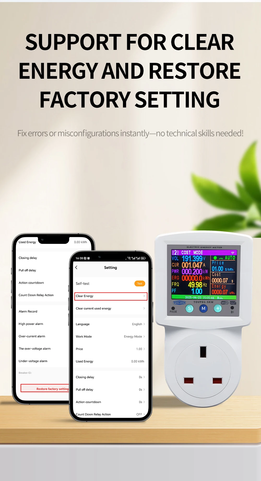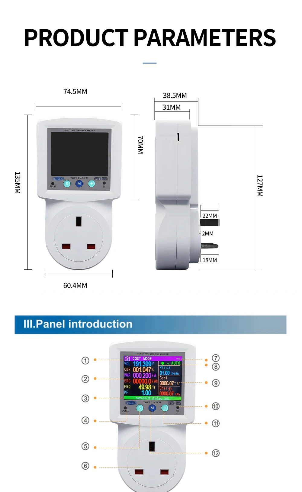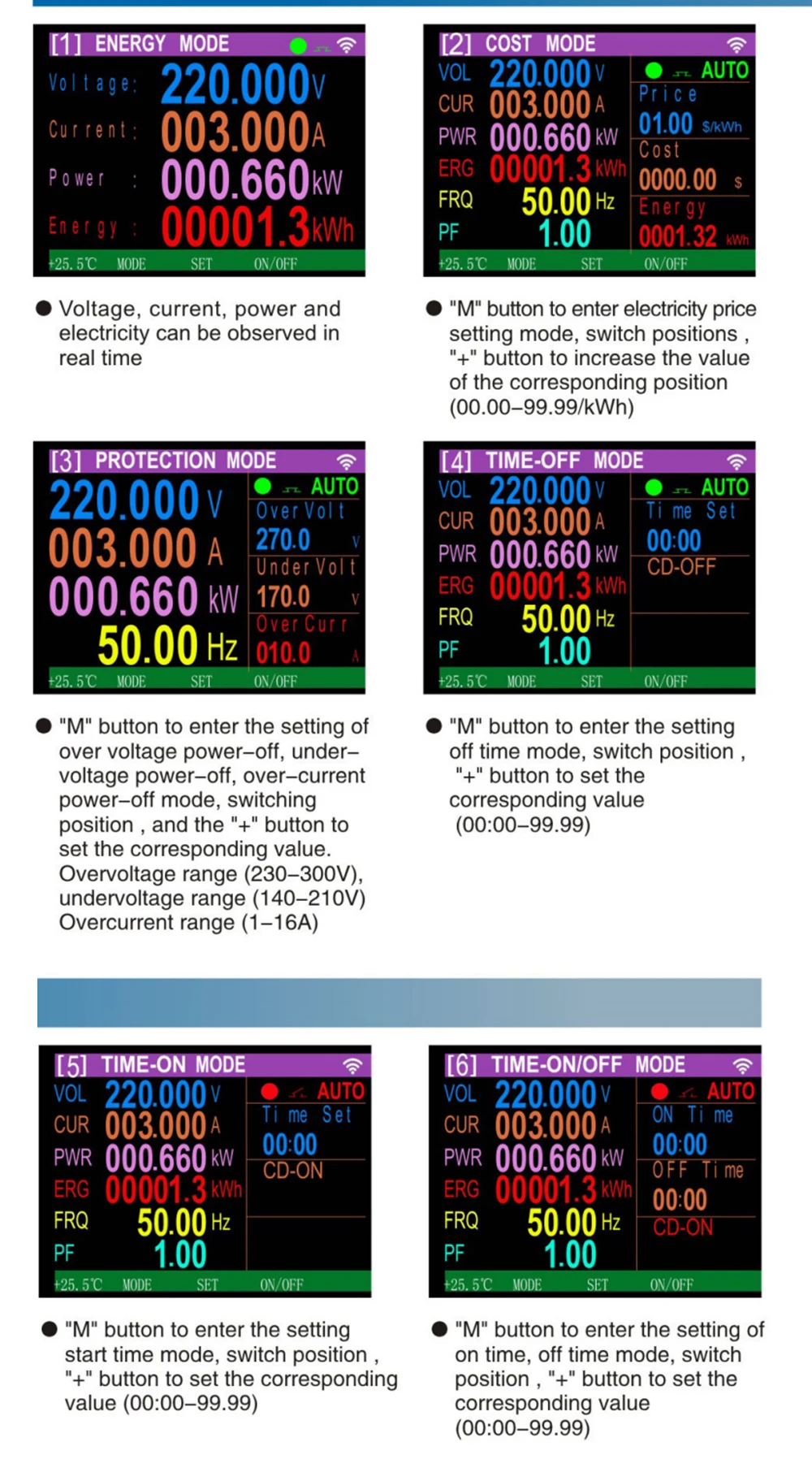 1.Energy mode: display Voltage??Current??Power??Energy??Frequency??Power factor