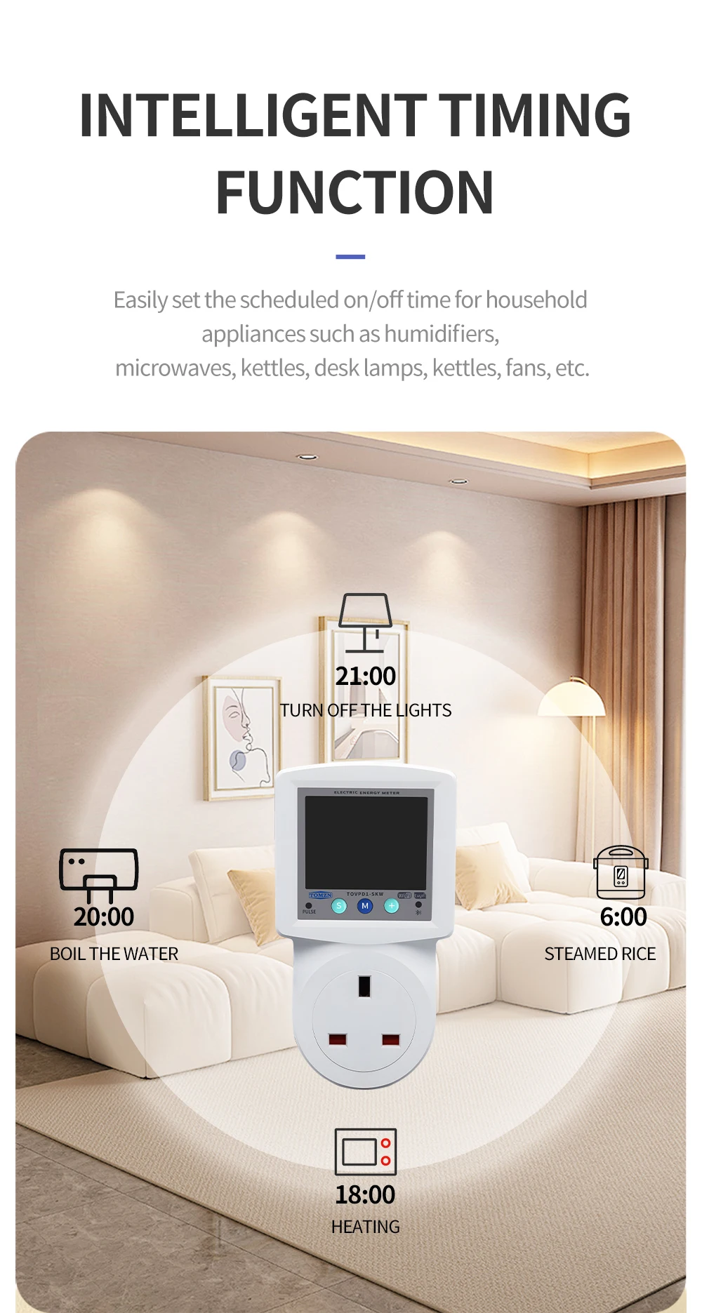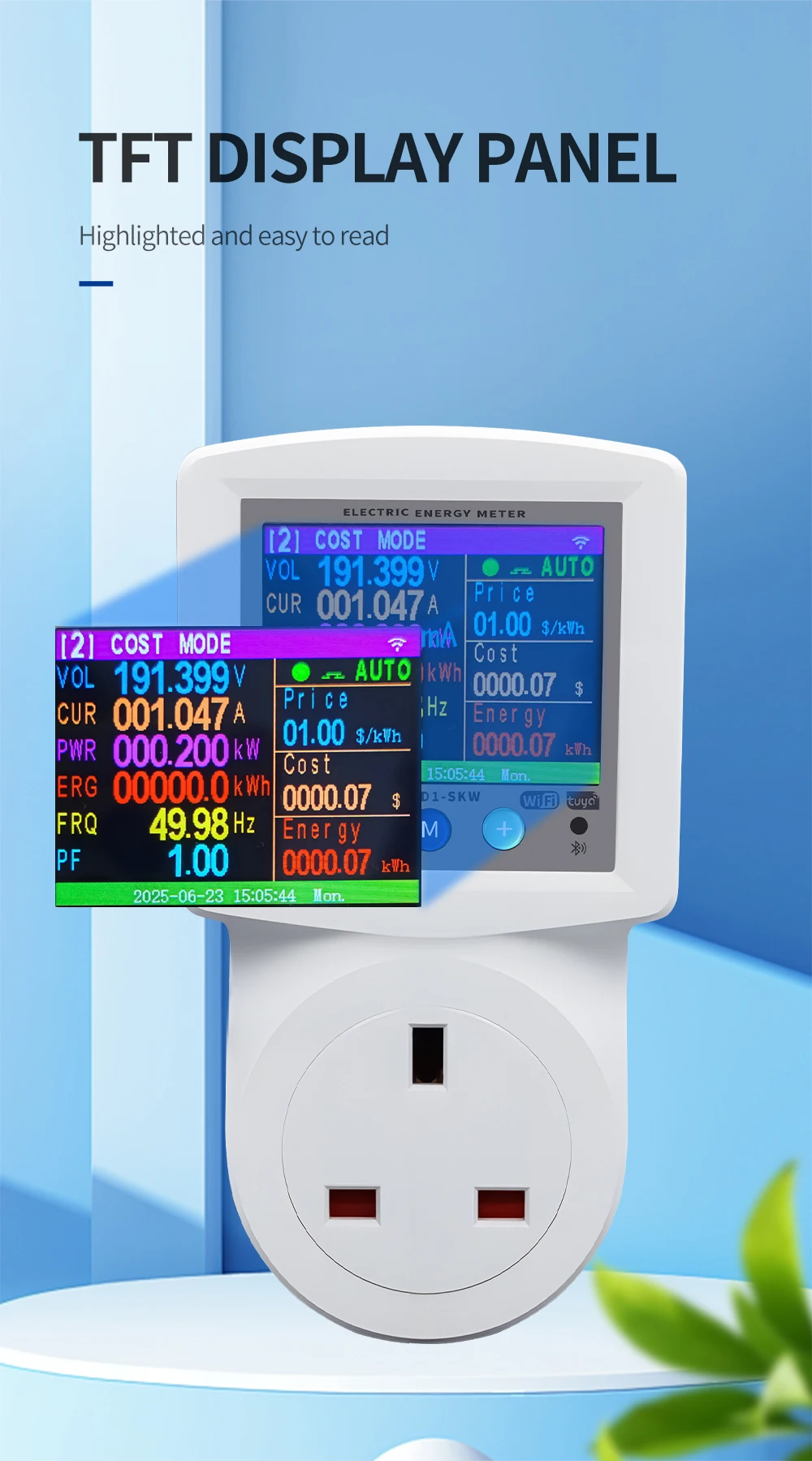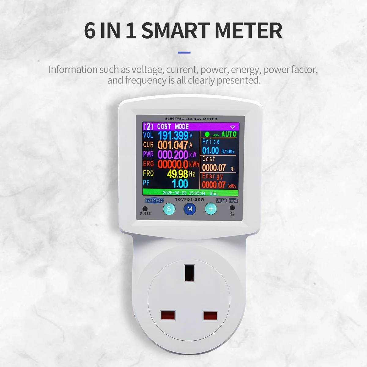 TOMZN SKW UK Power BS 1363 Socket WIFI TUYA Voltage Current AC 220V Adjustable 16A With PE Metering Timer British 3-Pin PF Hz kW