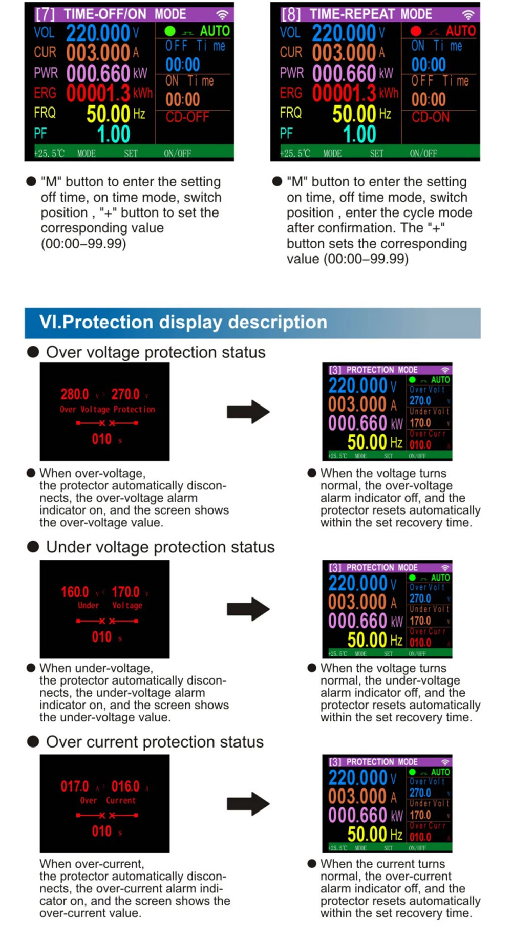 4.Over-voltage protection value range: 230~300V (default:270V)