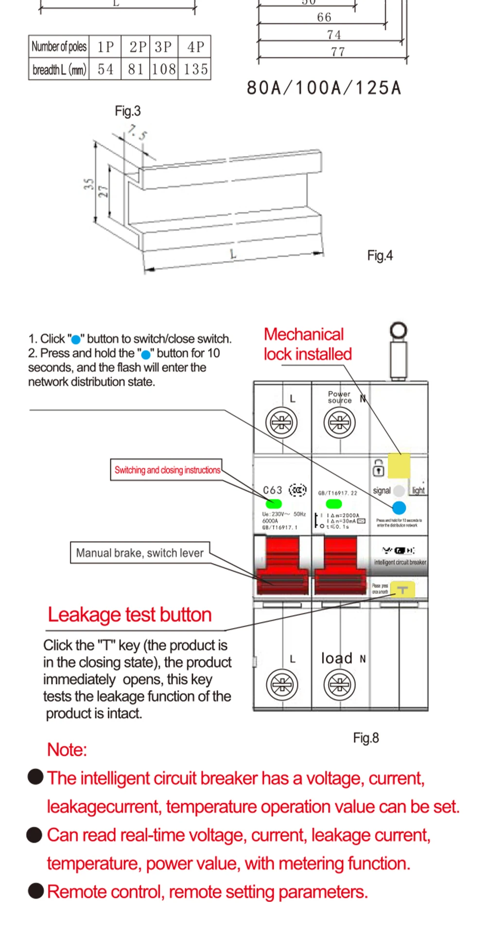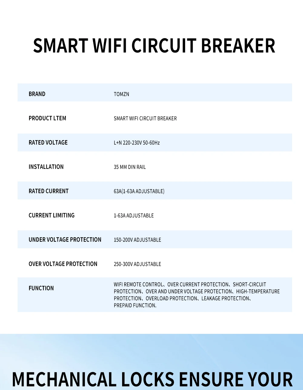 3. Over current protection 1-63A (adjustable) (default: 63A)