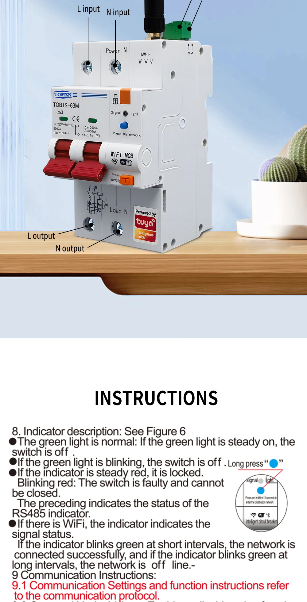 5. Leakage alarm 10-90mA(adjustable) (default: 30mA)