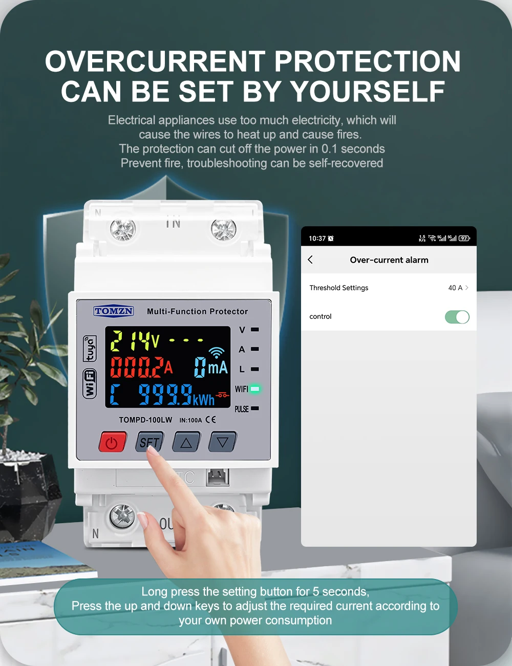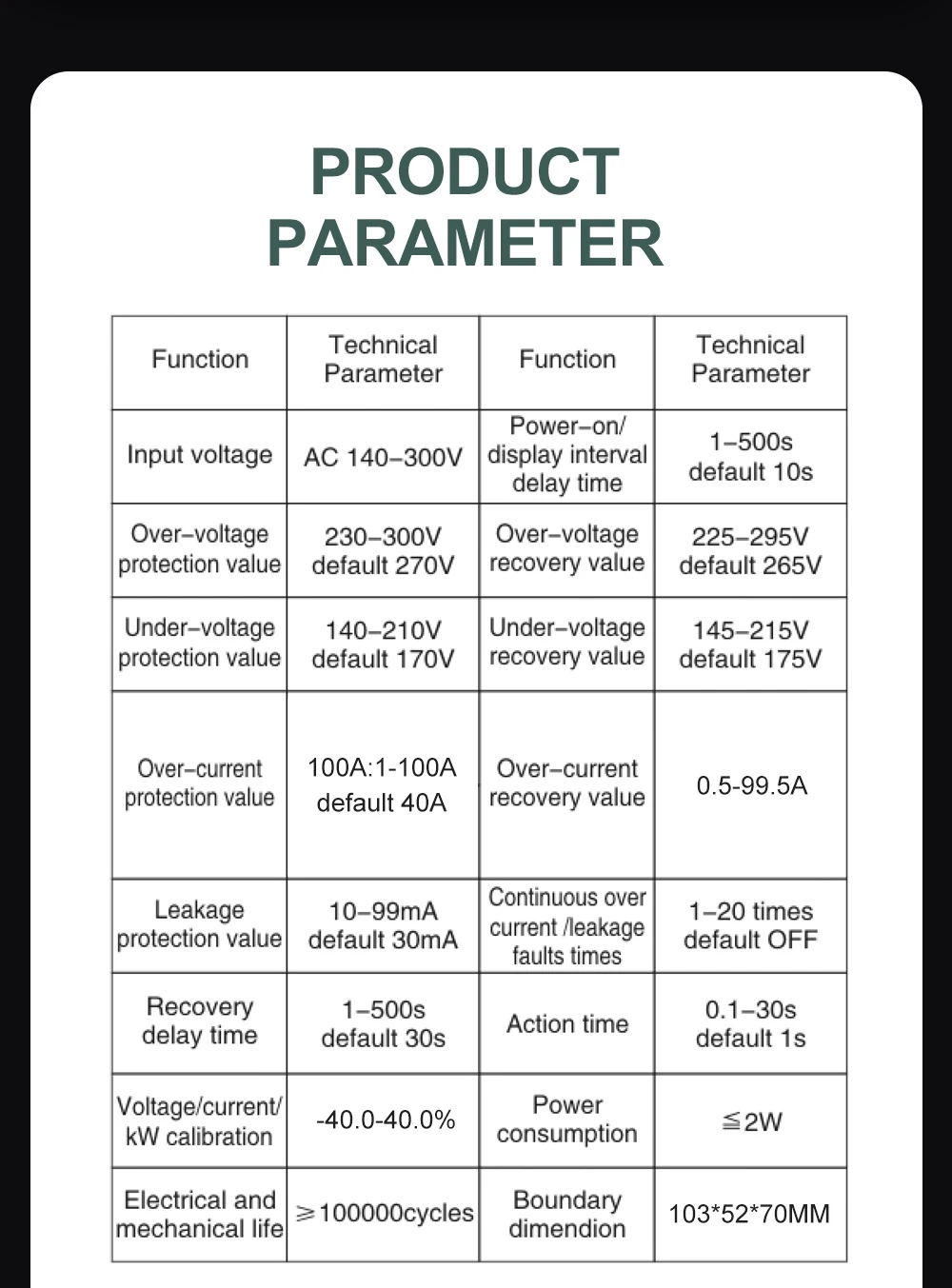 4.Can set over voltage/under voltage/over current/leakage current/over temperature in app or can set these by manual