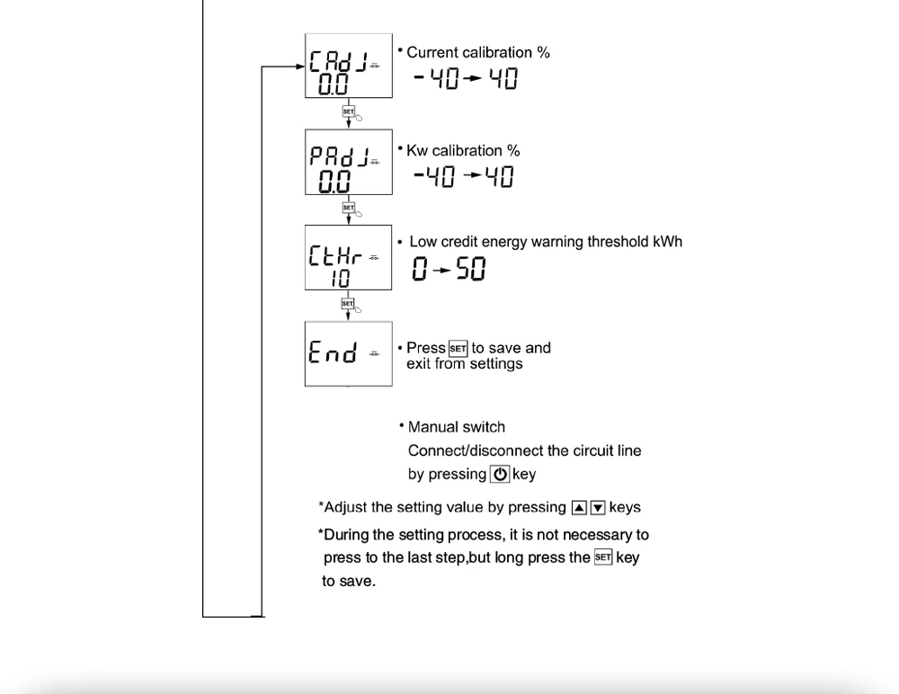 9.Voltage/current/kW calibration: -40%-40%