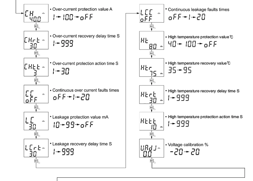 8.Reconnect time (delay on time): 1s-500s (default: 30s)