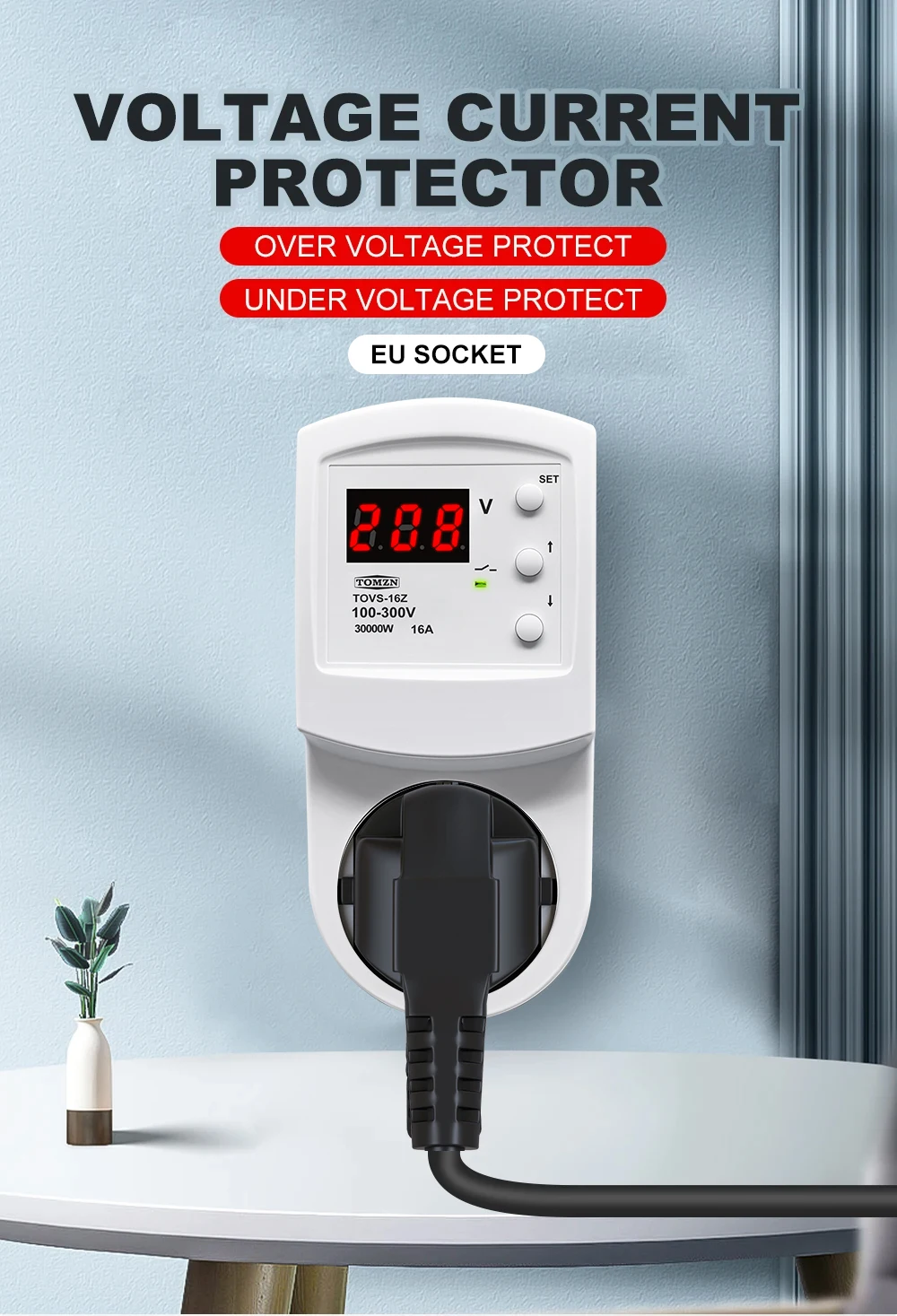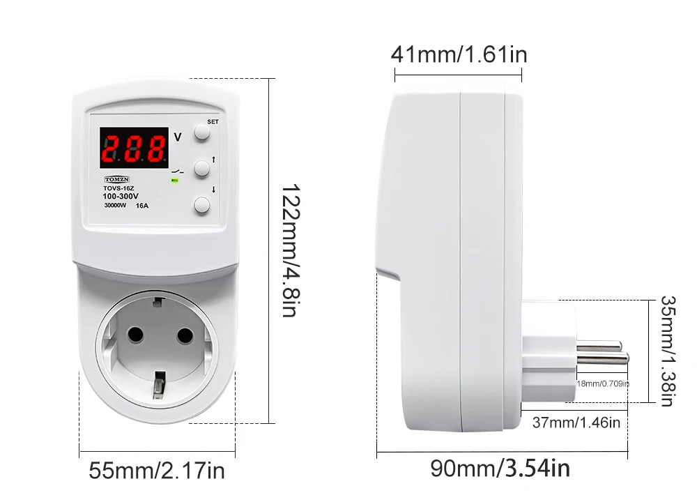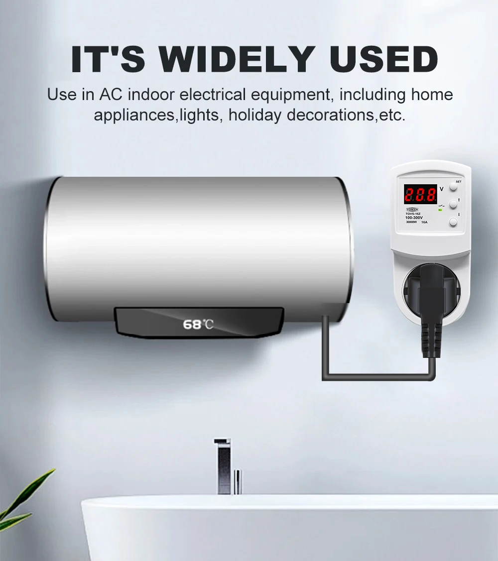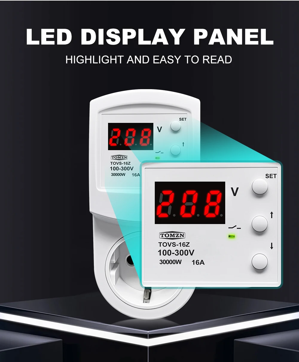 The TOMZN TOVS-16Z Automatic Voltage Protector Socket is a reliable solution for safeguarding your electrical appliances against overvoltage and undervoltage conditions. This smart device, although not a smart device, is designed to provide instantaneous protection when voltage levels deviate from the preset thresholds. With a power supply range of 100-300VAC, it is suitable for a variety of electrical systems, catering to both residential and commercial environments.