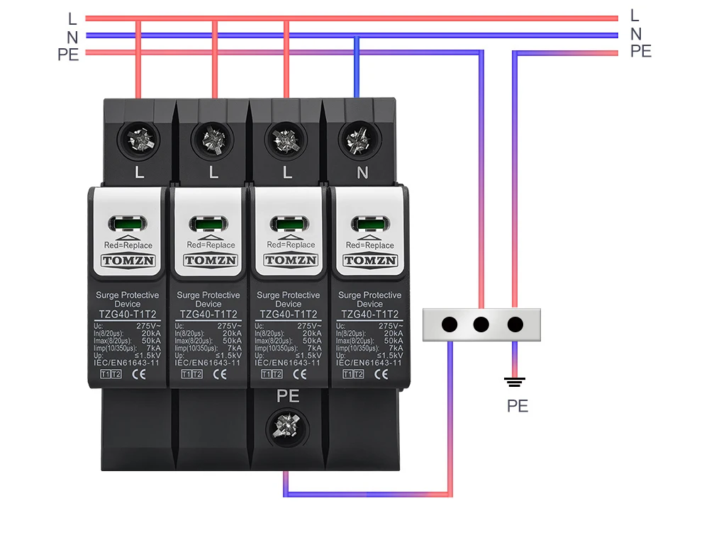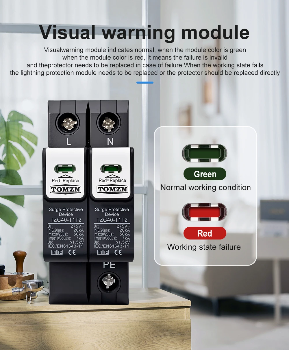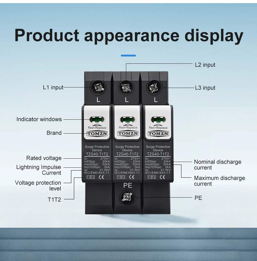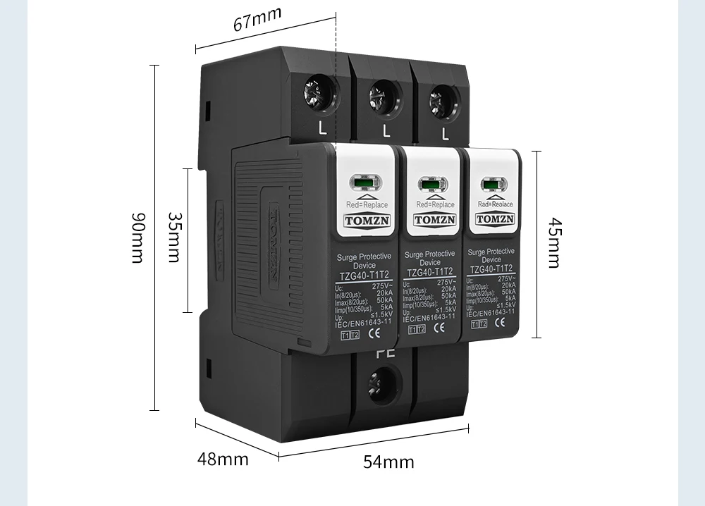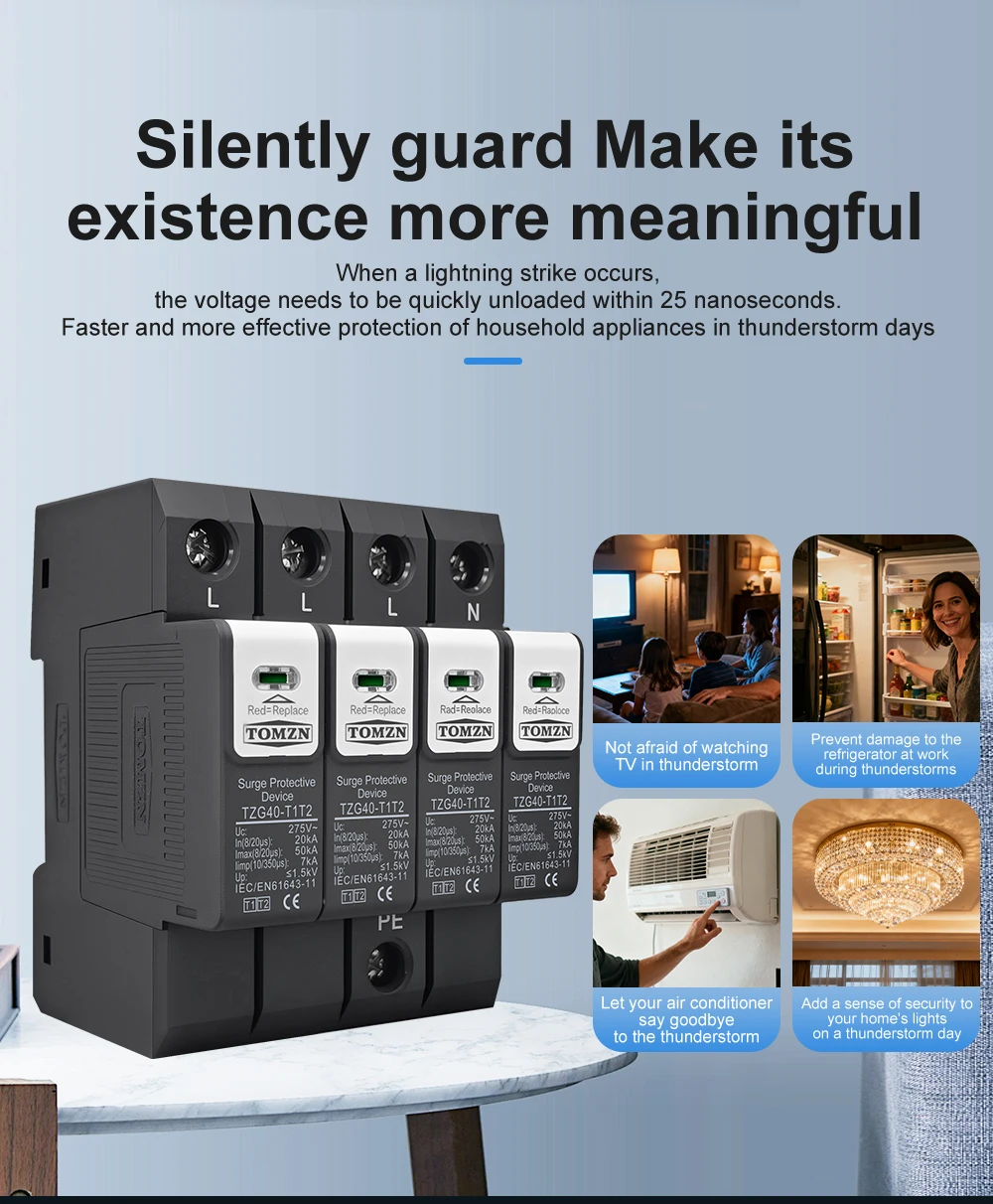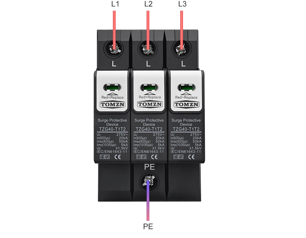 The TOMZN TZG40-T1T2 meets or exceeds international standards for surge protection, including IEC 61643-1 and IEC 61643-22. These standards ensure that the device is tested and certified for performance, safety, and durability. This compliance gives users confidence in the product’s quality and effectiveness.