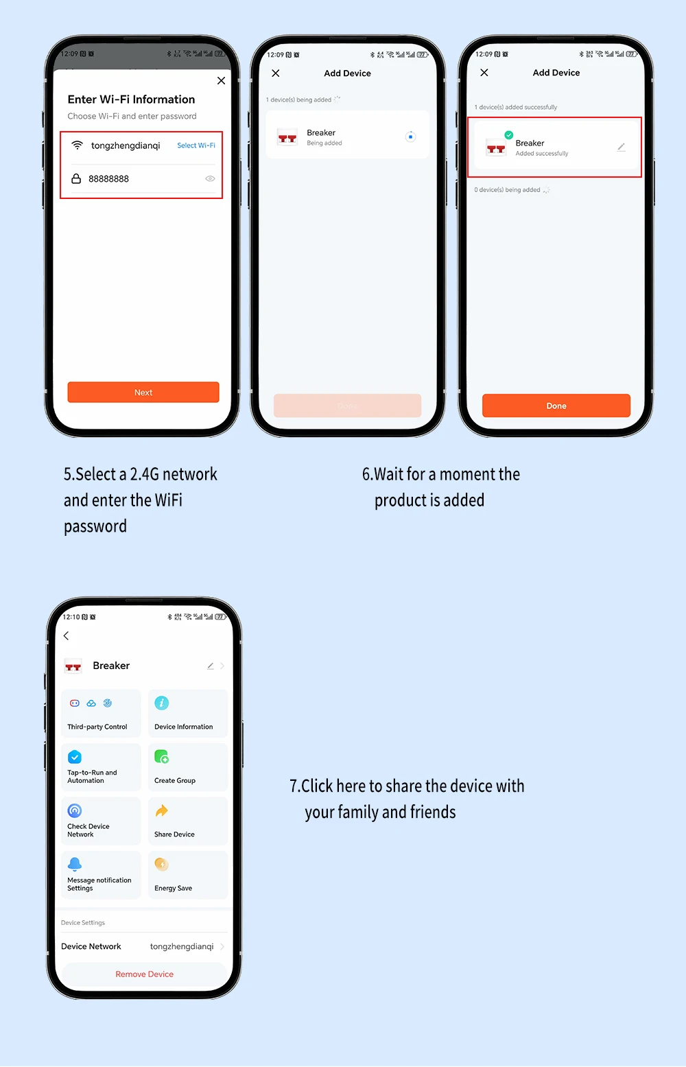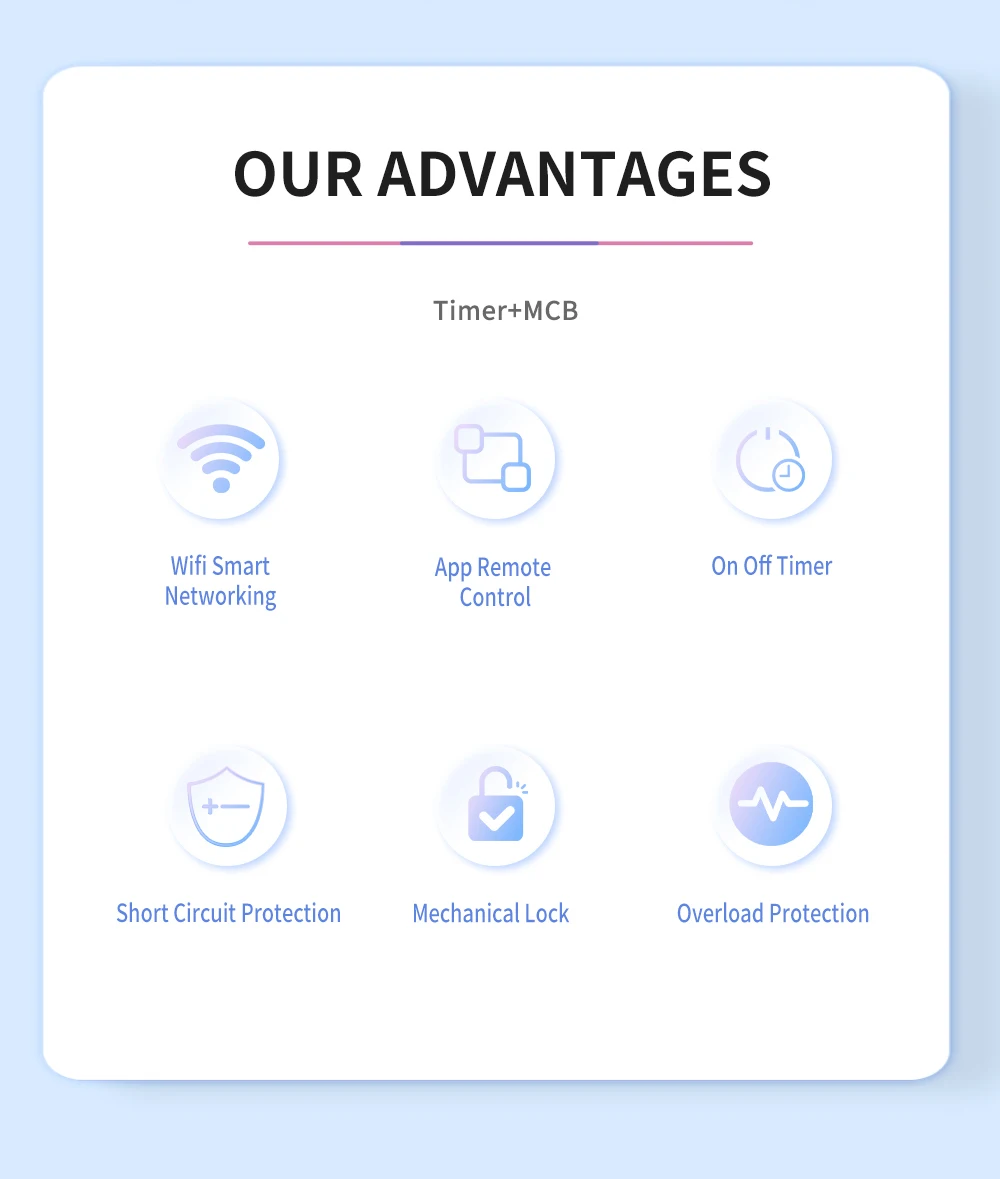 This product is an intelligent modular rail-type circuit breaker designed for AC 50/60Hz systems with a rated voltage of 230/400V and a rated current of 10-100A. It provides reliable overload and short-circuit protection for connected loads and circuits. The breaker features advanced mobile remote control functionality, allowing users to switch it on/off via a smartphone app, which also displays its real-time status. Additional smart capabilities include timing and delay control. With an attractive design, high reliability, strong breaking capacity, and fast trip mechanism, it is an ideal solution for modern electrical installations.
