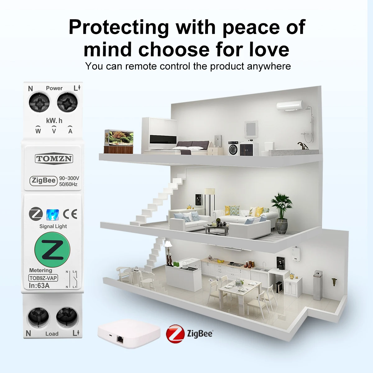 TOMZN Zigbee 63A 1P+N WIFI Smart Switch Energy Meter Kwh Metering Monitoring Circuit Breaker Timer Relay MCB TUYA smartlife