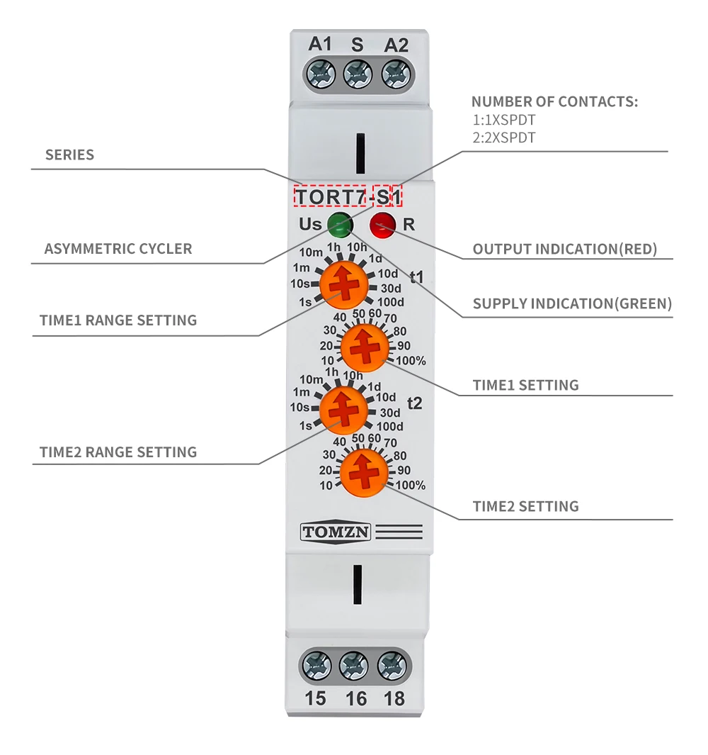 TORT7-S1 Asymmetric cycle Time Relay 0.1S-10DAYS