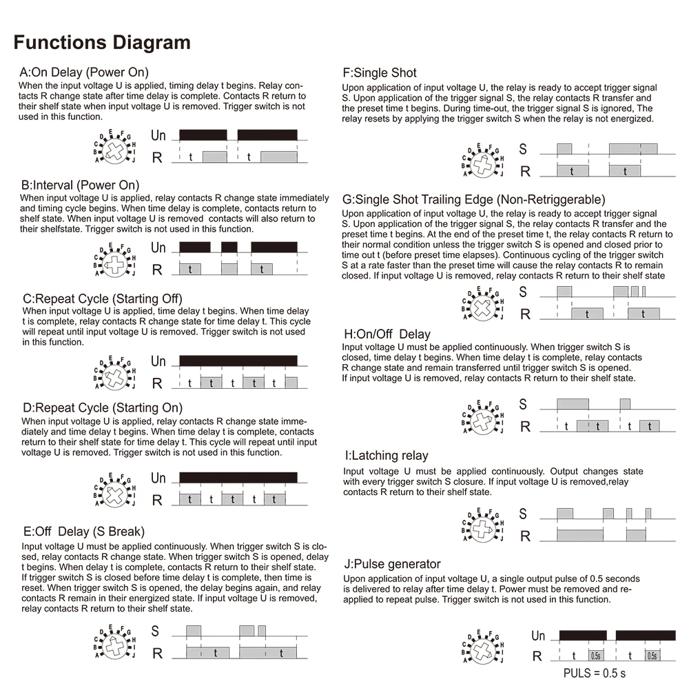 TORT7-M1: on-delay, off-delay, interval, repeat cycle, single shot, latching, pulse generation